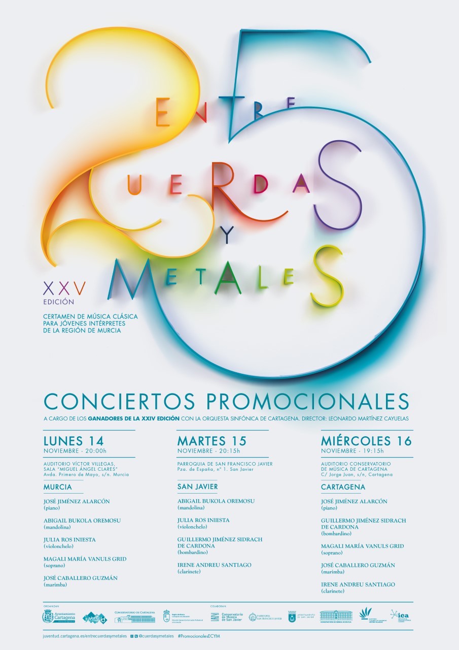 Los conciertos promocionales cuenta con la participación de los jóvenes galardonados con los primeros premios de la edición anterior en cada una de las modalidades que conforman el concurso y estos tocan como solistas con una orquesta profesional, en este caso con la Orquesta Sinfónica de Cartagena (con plantilla de Orquesta de Cámara). La iniciativa les ofrece una gran oportunidad formativa para su carrera musical y un proceso de maduración artística y profesional futura. La experiencia de anteriores ediciones, confirma que existen posibilidades de que algunos de ellos triunfarán como solistas de orquestas importantes, tanto a nivel nacional como internacional, siguiendo el camino de la mayoría de sus antecesores.