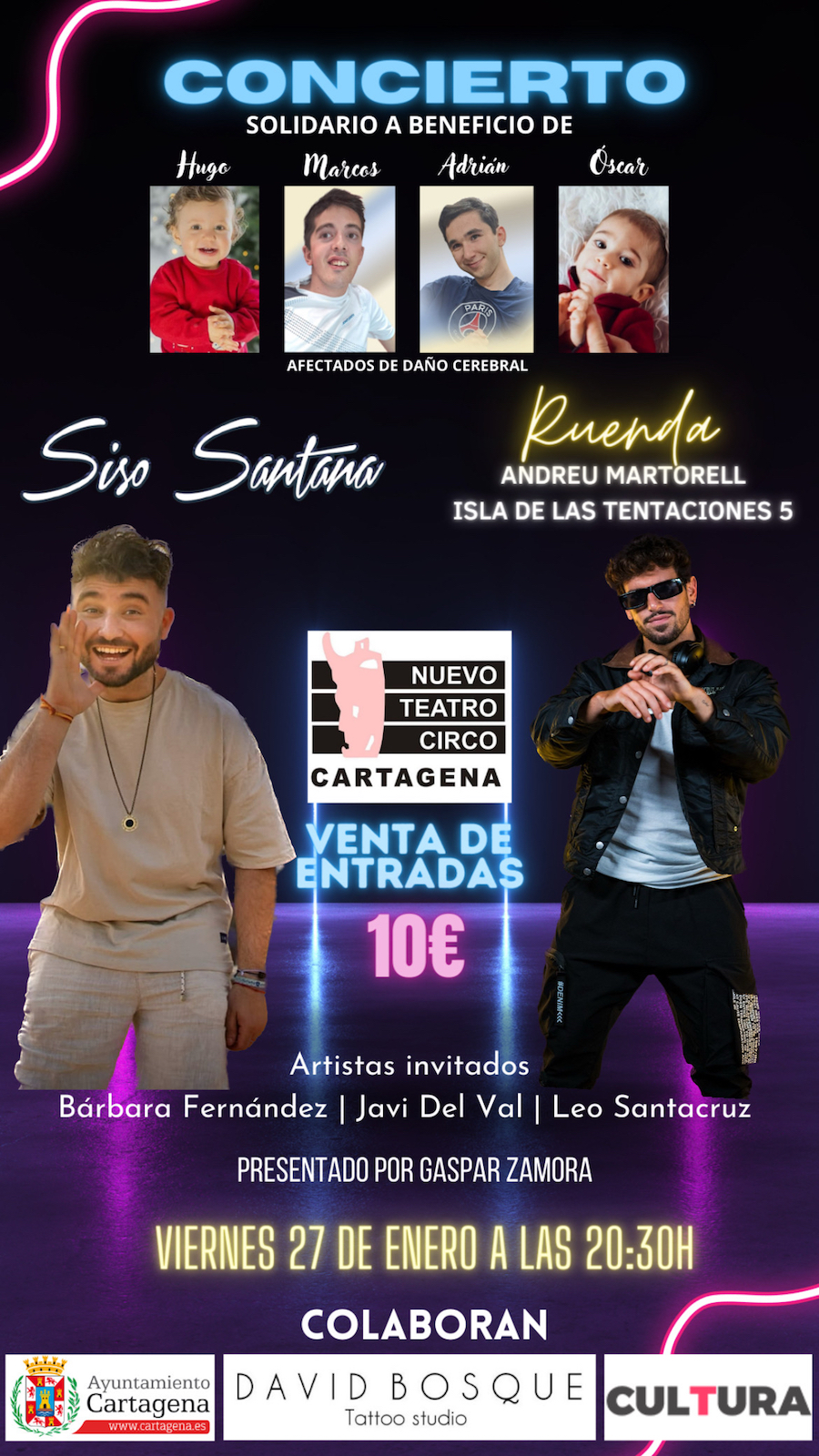 El concierto promovido por el décimo aniversario de la marca Siso Santana, cantante del Polígono Santa Ana, se celebra hoy, a partir de las 20.30 horas, en Nuevo Teatro Circo de la ciudad de Cartagena, con Bárbara Fernández, Javi del Val y Leo Santacruz como artistas invitados, además de Andreu y Cristian, dos participantes del concurso televisivo 'La isla de las tentaciones'.
