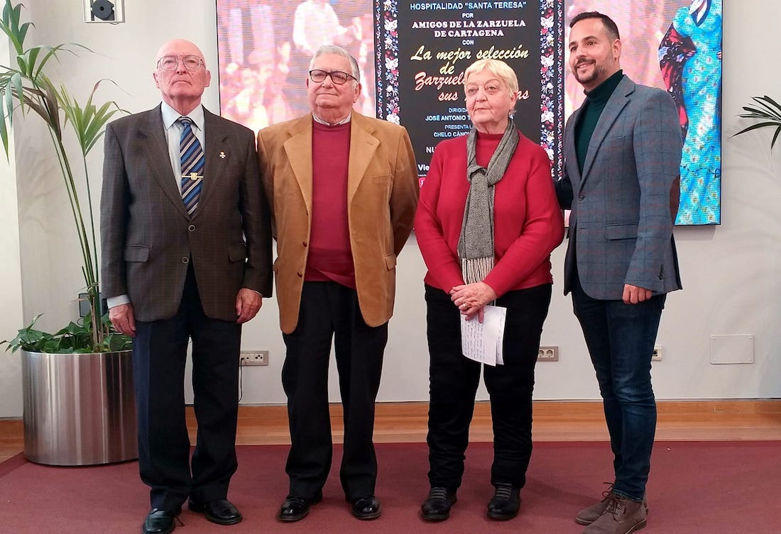 Han presentado la gala el concejal de Cultura, David Martínez Noguera, junto a la presidente de la Asociación Lírico Cultural de Amigos de la Zarzuela de Cartagena, Chelo Cánovas; el maestro José Antonio Torre Acosta; y el presidente de la Hospitalidad de Santa Teresa, Vicente Villar.