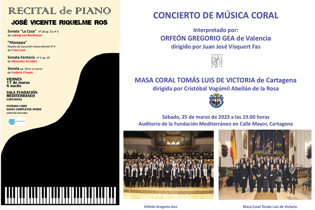- Viernes 17 de marzo, 20 h.: Recital de piano de José Vicente Riquelme Ros.