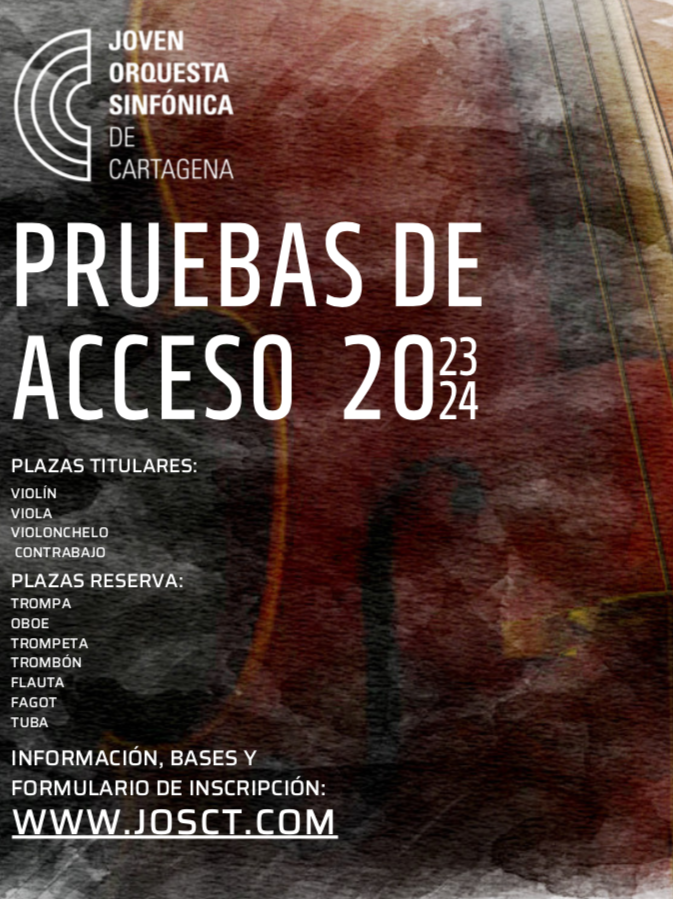 La Joven Orquesta Sinfónica de Cartagena lleva a cabo esta convocatoria que tiene como objetivo cubrir vacantes en diferentes especialidades instrumentales. El plazo de presentación de solicitudes finalizará el 4 de abril.