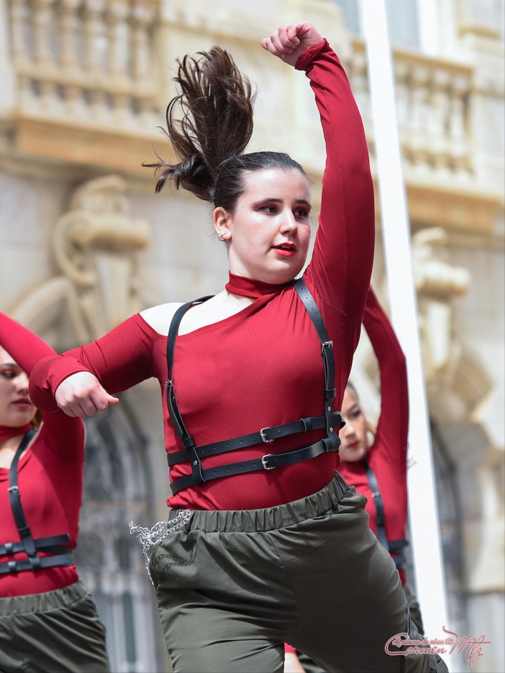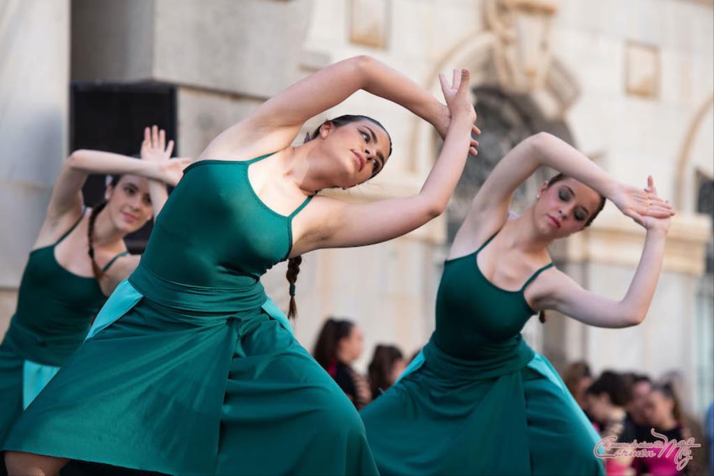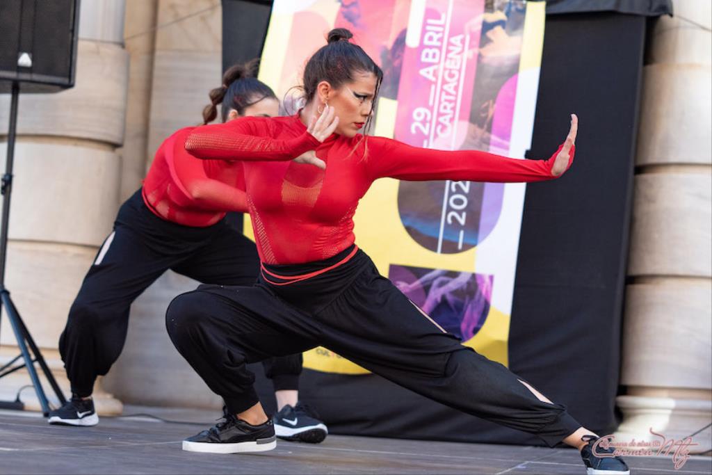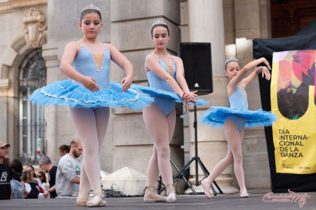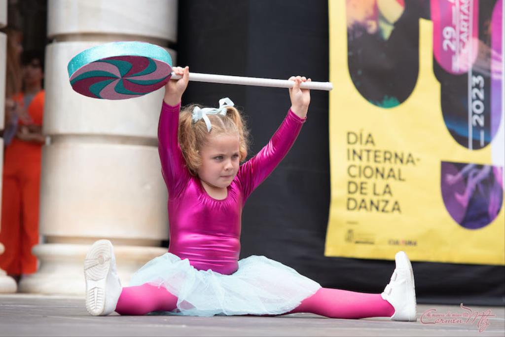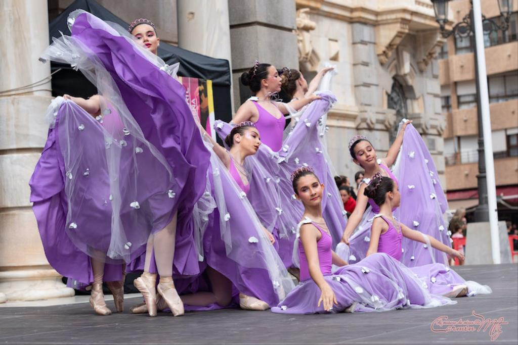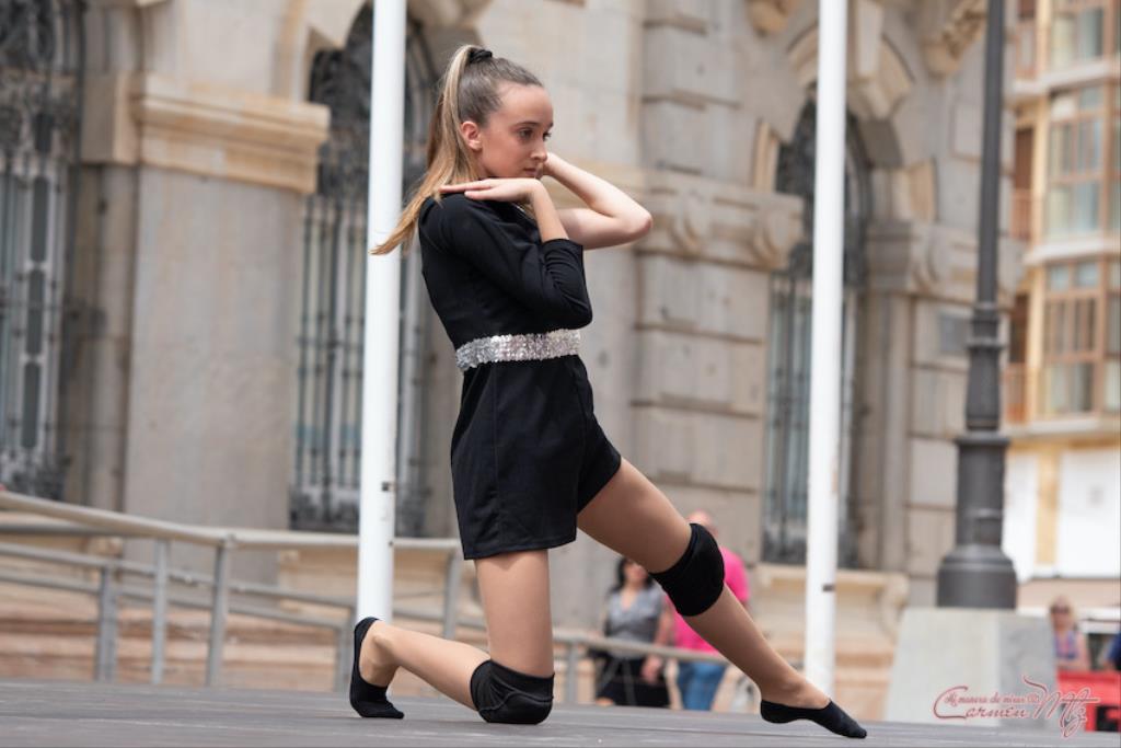 La fotógrafa cartagenera Carmen Martínez Martínez ofrece un repertorio de fotografías de calidad y de unas perspectivas que permiten apreciar muchos detalles de las actuaciones de los cuatrocientos bailarines que pasaron por el escenario del Palacio Consistorial en el 'Día internacional de la danza'.