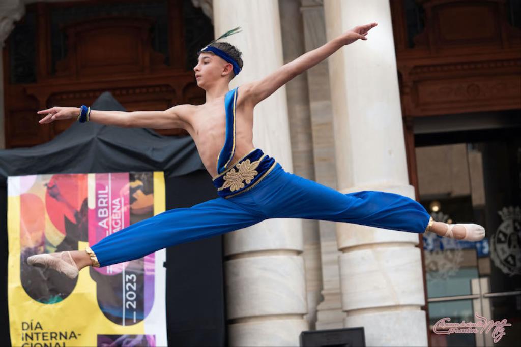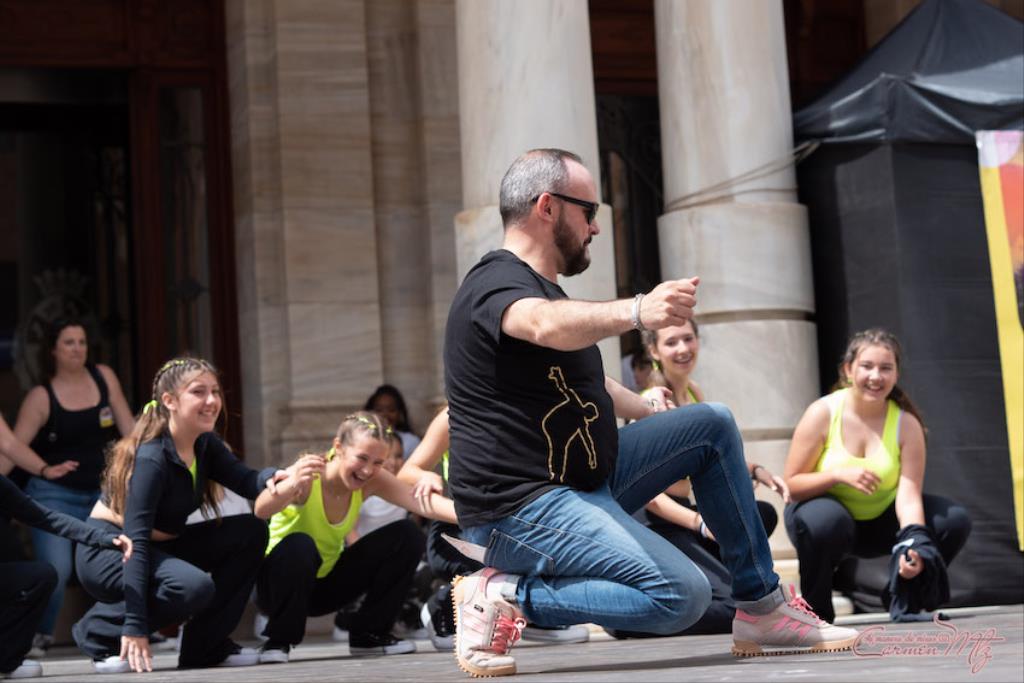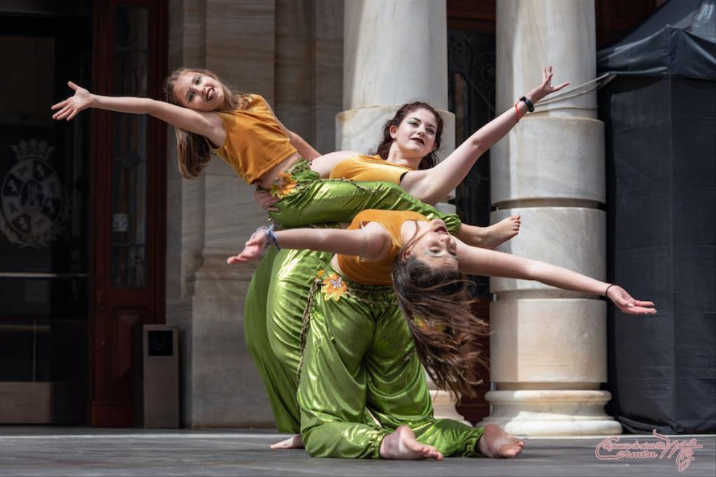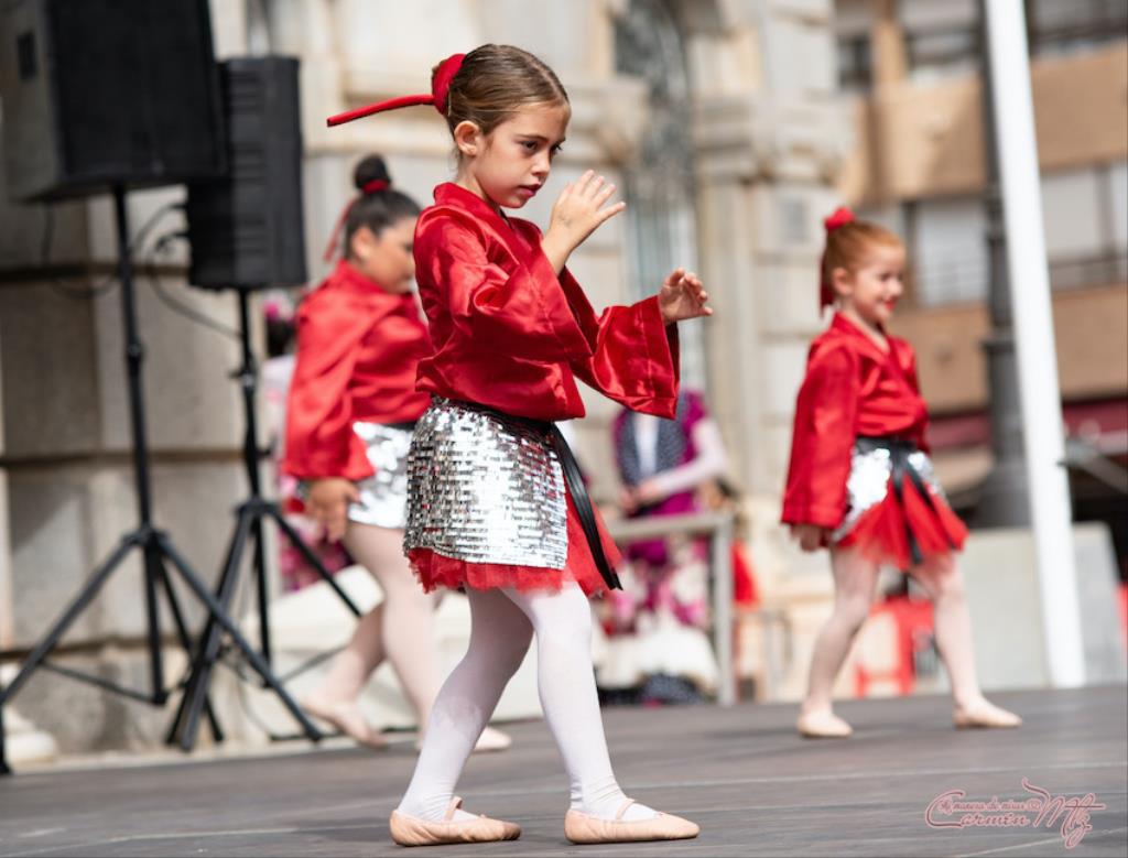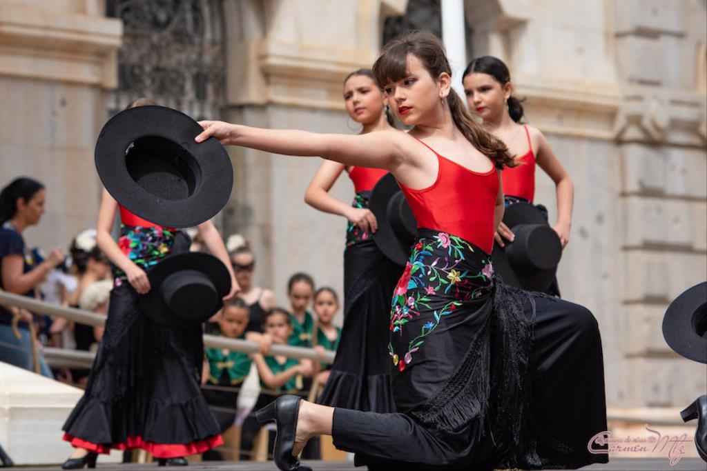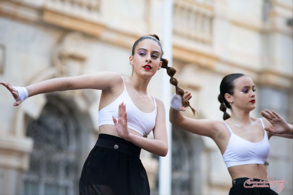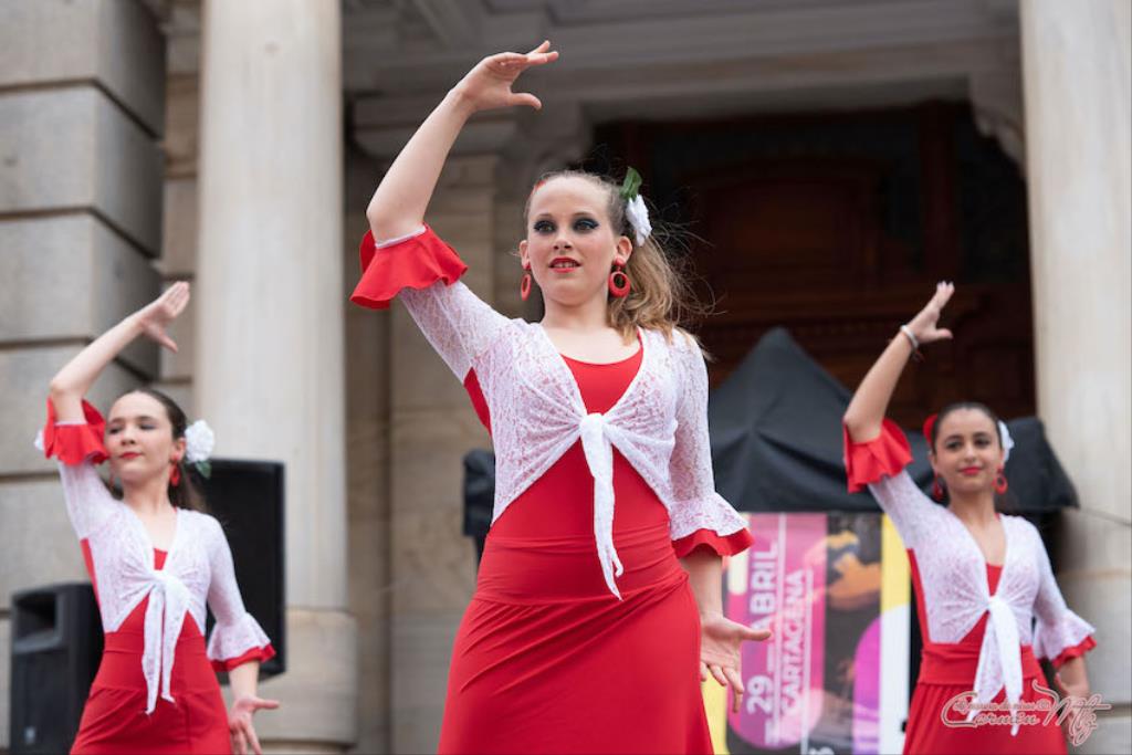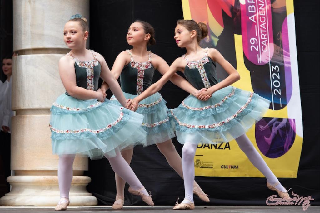 La fotógrafa cartagenera Carmen Martínez Martínez ofrece un repertorio de fotografías de calidad y de unas perspectivas que permiten apreciar muchos detalles de las actuaciones de los cuatrocientos bailarines que pasaron por el escenario del Palacio Consistorial en el 'Día internacional de la danza'.