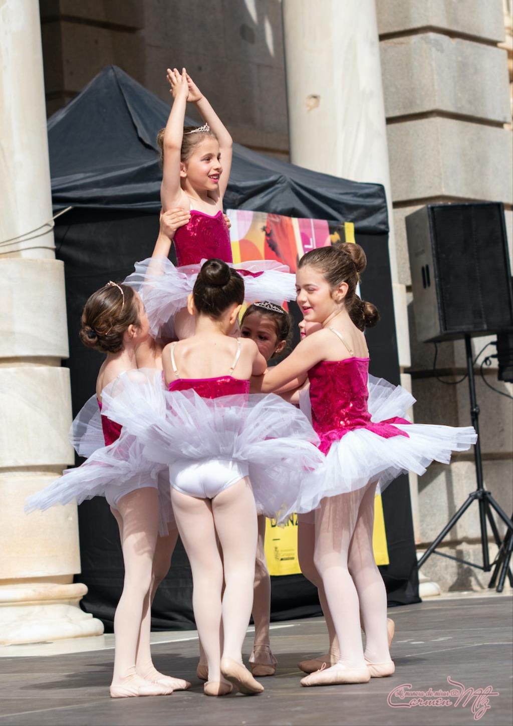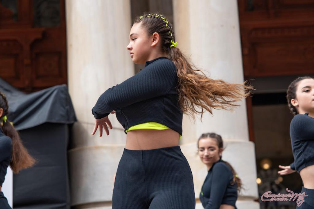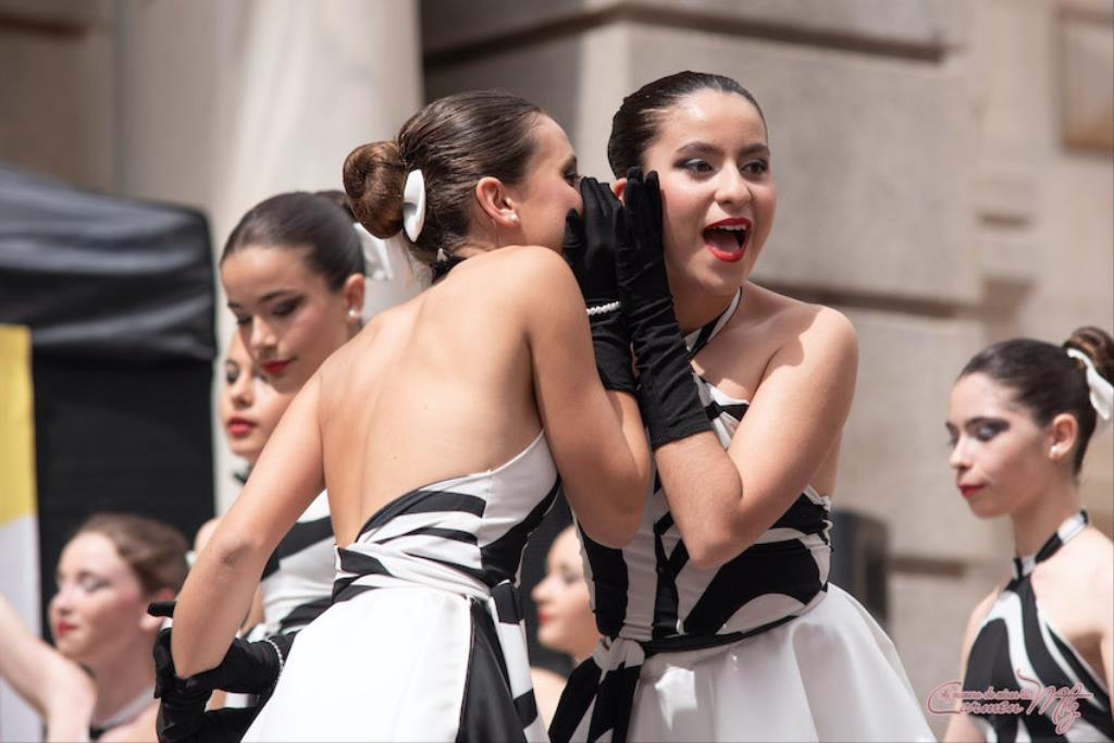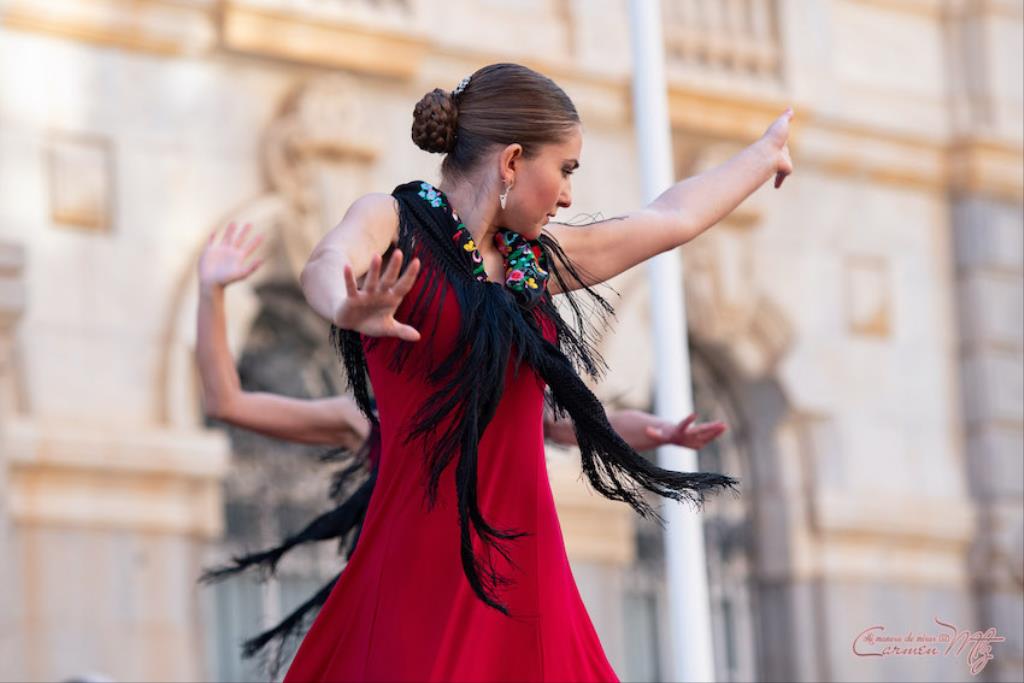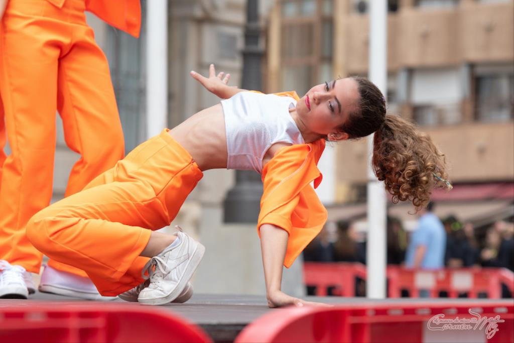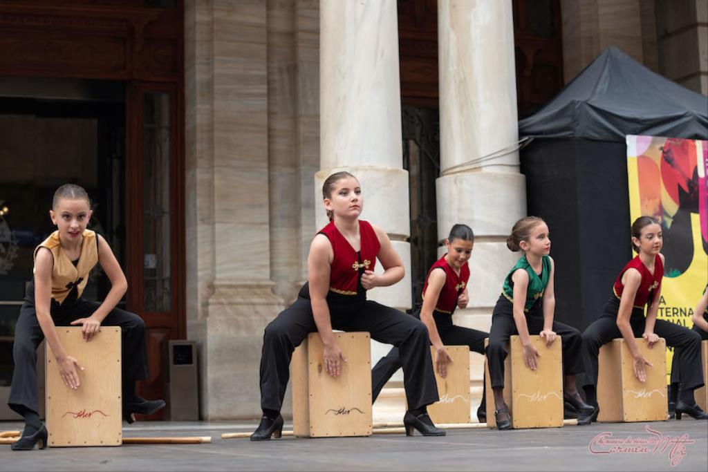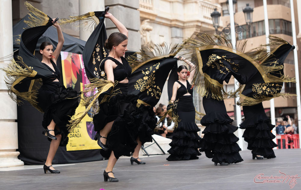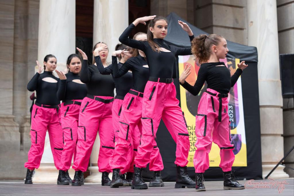 La fotógrafa cartagenera Carmen Martínez Martínez ofrece un repertorio de fotografías de calidad y de unas perspectivas que permiten apreciar muchos detalles de las actuaciones de los cuatrocientos bailarines que pasaron por el escenario del Palacio Consistorial en el 'Día internacional de la danza'.