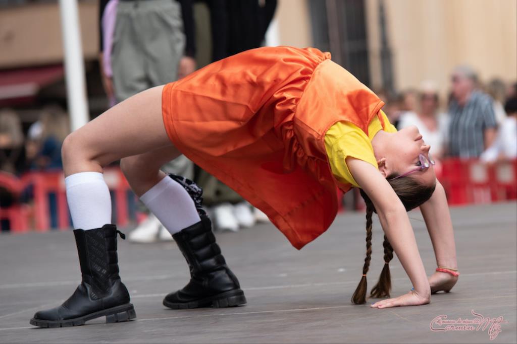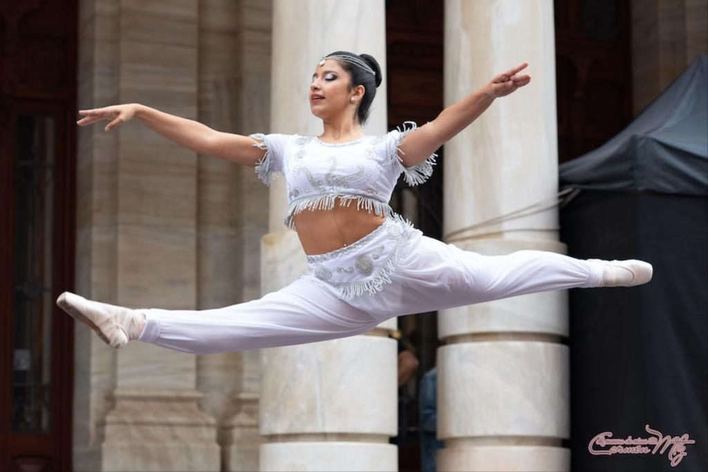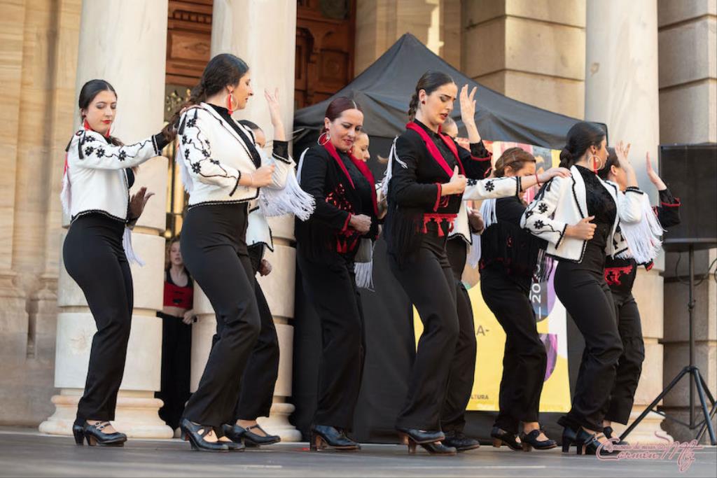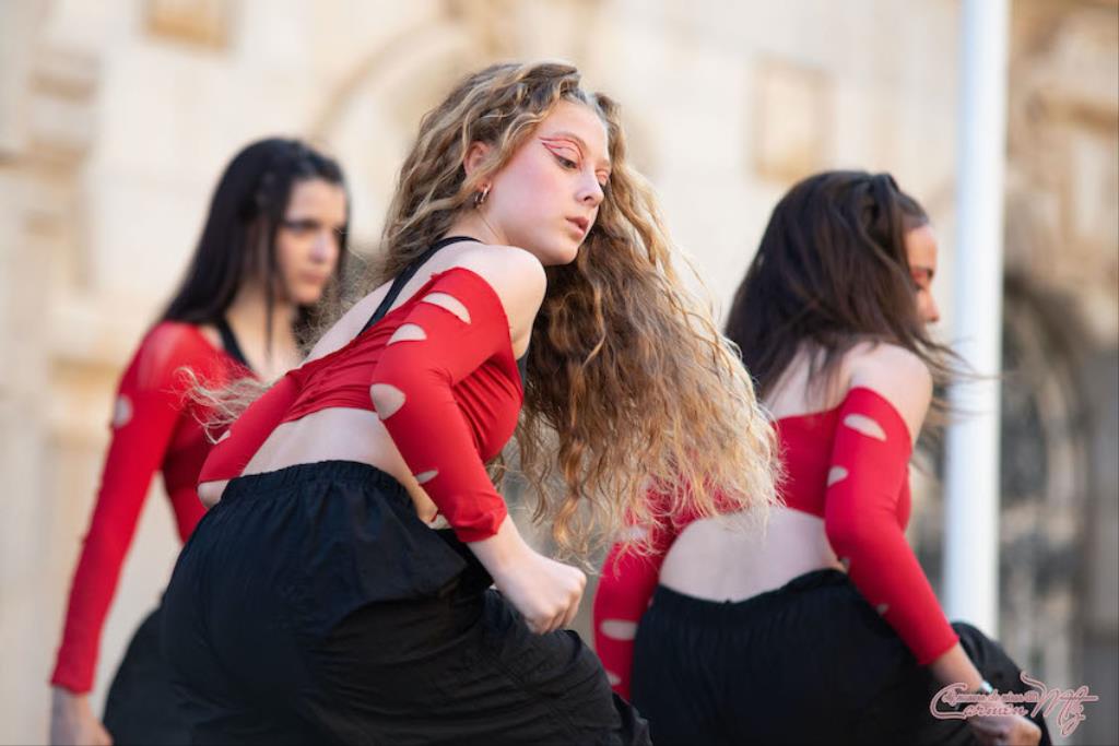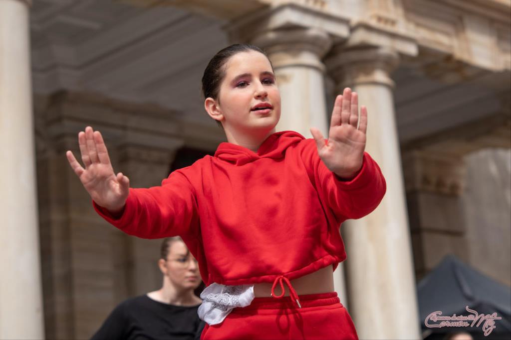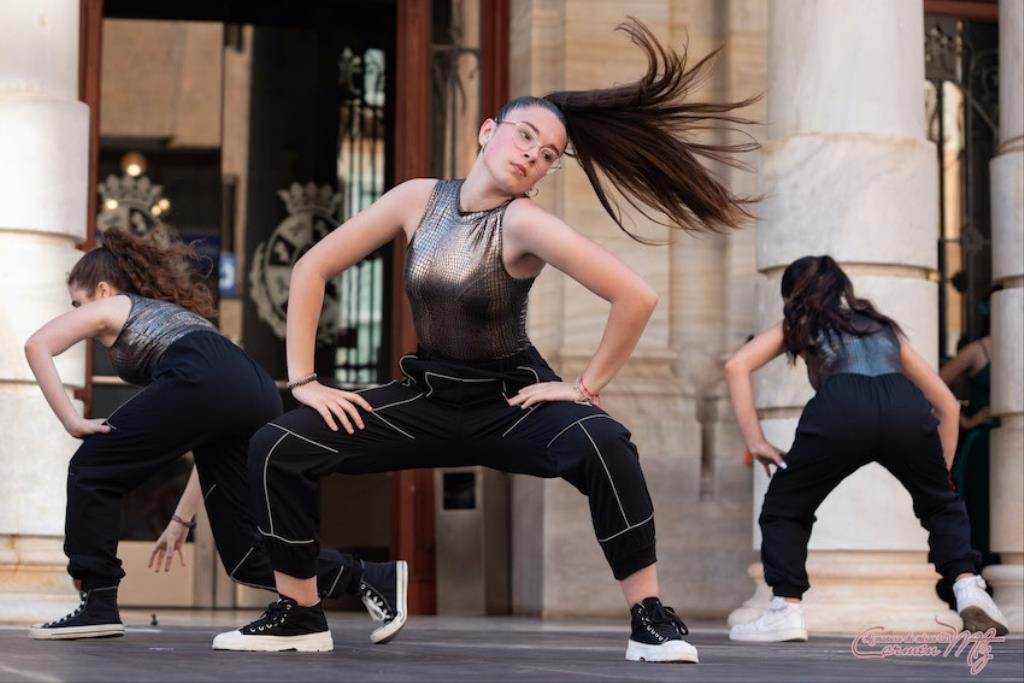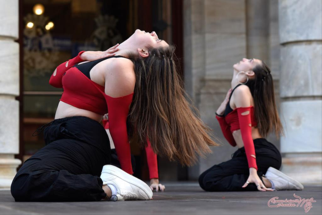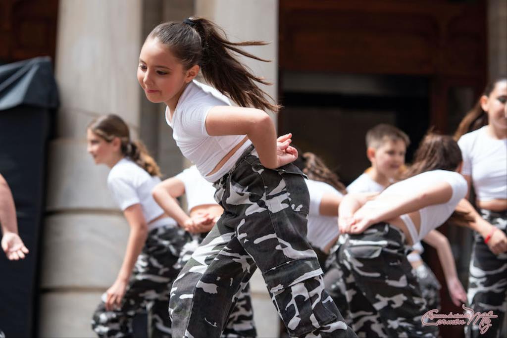 La fotógrafa cartagenera Carmen Martínez Martínez ofrece un repertorio de fotografías de calidad y de unas perspectivas que permiten apreciar muchos detalles de las actuaciones de los cuatrocientos bailarines que pasaron por el escenario del Palacio Consistorial en el 'Día internacional de la danza'.