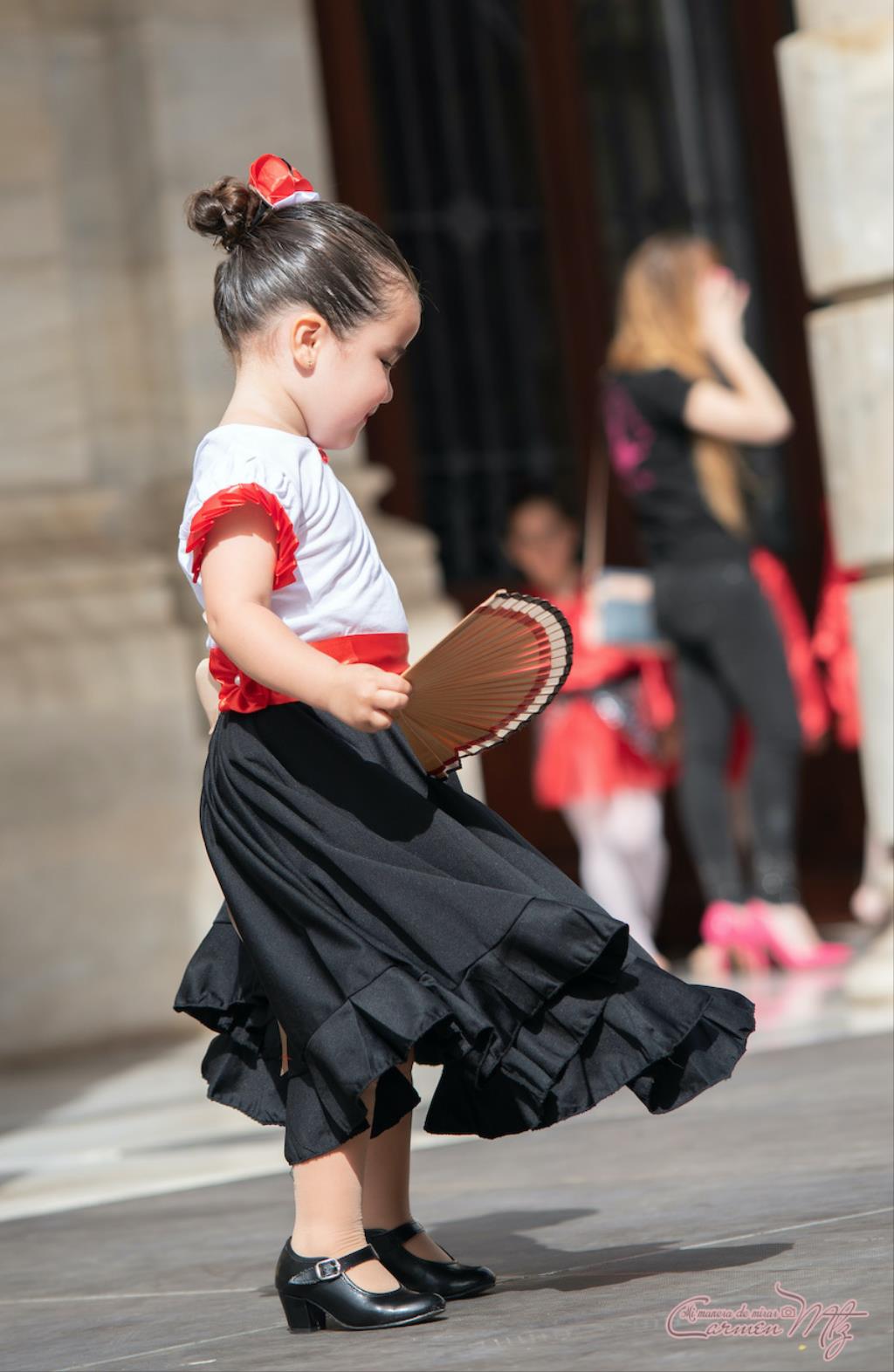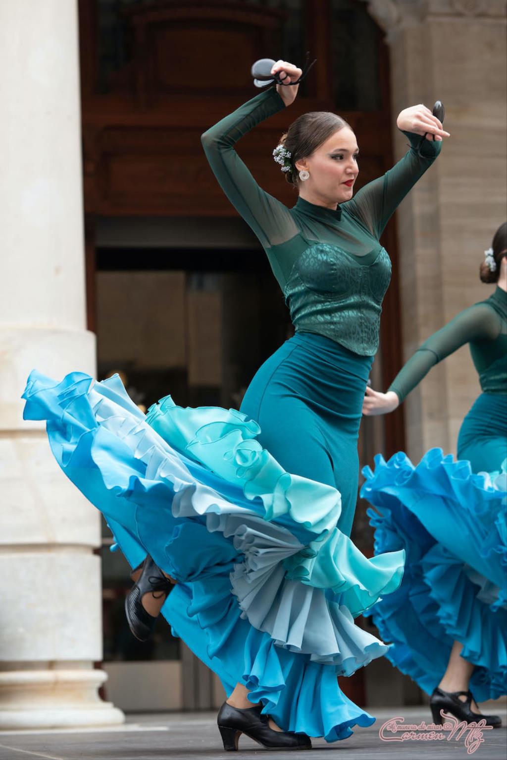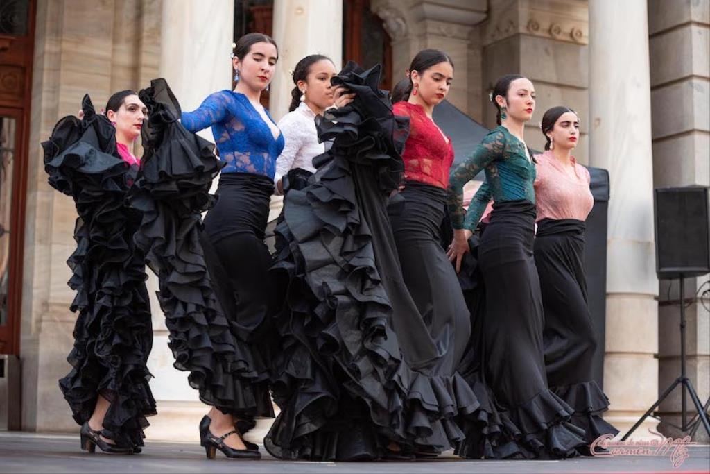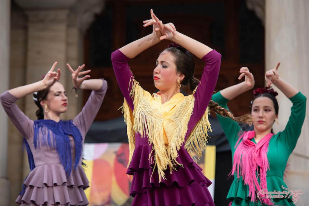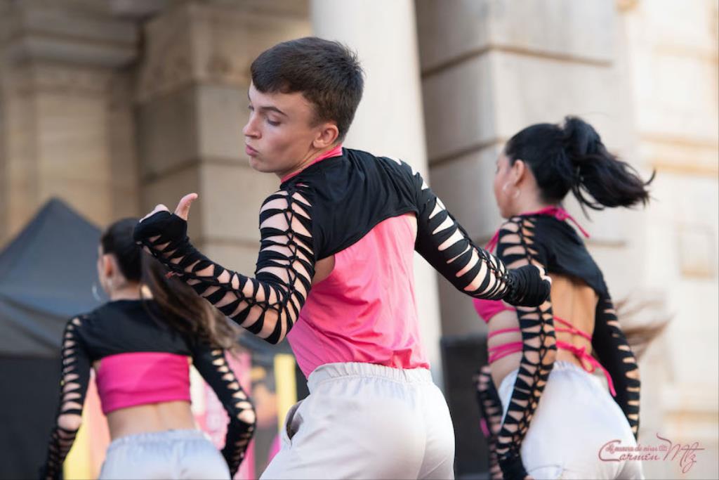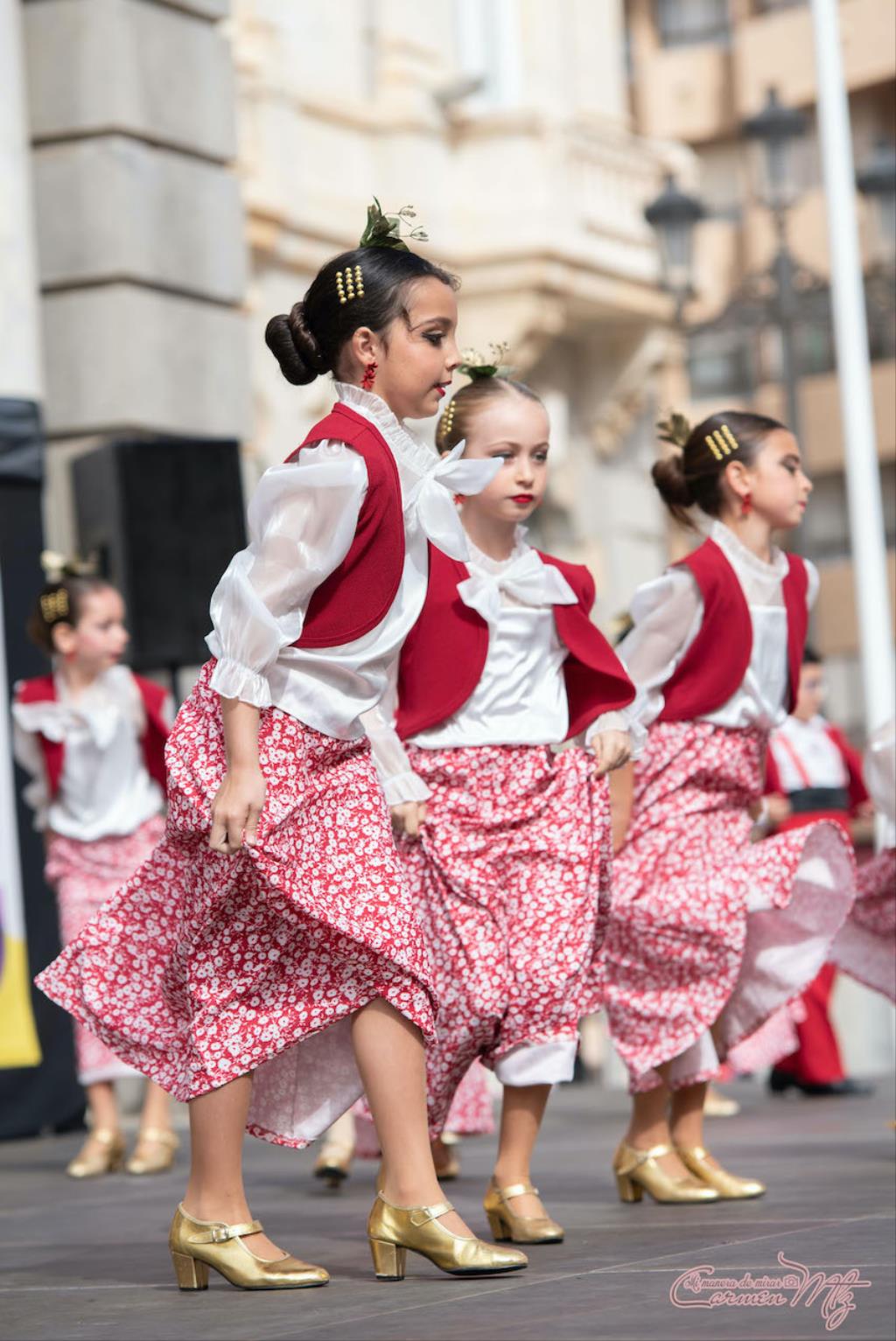 La fotógrafa cartagenera Carmen Martínez Martínez ofrece un repertorio de fotografías de calidad y de unas perspectivas que permiten apreciar muchos detalles de las actuaciones de los cuatrocientos bailarines que pasaron por el escenario del Palacio Consistorial en el 'Día internacional de la danza'.
