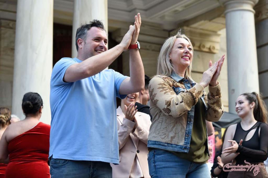 Los profesores saludando y aplaudiendo al público por su apoyo a los grupos de baile