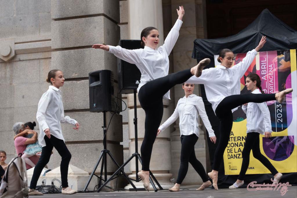 El 'Día internacional de la danza', celebración mundial que se estrenó en 1982, ha estado organizada en Cartagena por el Ayuntamiento, que estuvo representado, entre otros, por David Martínez y Carlos Piñana, concejales de Cultura. Hubo una lectura del manifiesto a cargo de Kike Guerrero, bailarín y director artístico del festival 'MuDanzas-ncuentros con la nueva danza'. En cuanto al baile, participaron más de cuatrocientos bailarines, la mayoría muy jóvenes, bajo la dirección de 38 profesionales de las distintas escuelas y asociaciones, ofreciendo un gran abanico de estilos y disciplinas dancísticas.