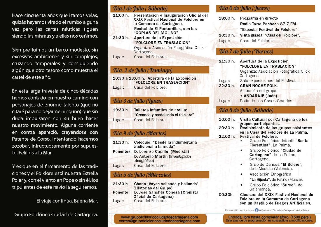 Los jienenses 'Andaraje' protagonizarán la noche de folk del día 7 de julio en 'El palmeral' de las Casas Grandes, mientras que en la jornada siguiente, la XXIX edición del festival nacional contará con 'El Bolero', 'Surco', 'La Hijuela' y los anfitriones del grupo de La Palma, que han preparado un rico programa, que también incluye talleres y charlas, desde el día uno y que coincidirá con el 50 aniversario del colectivo.