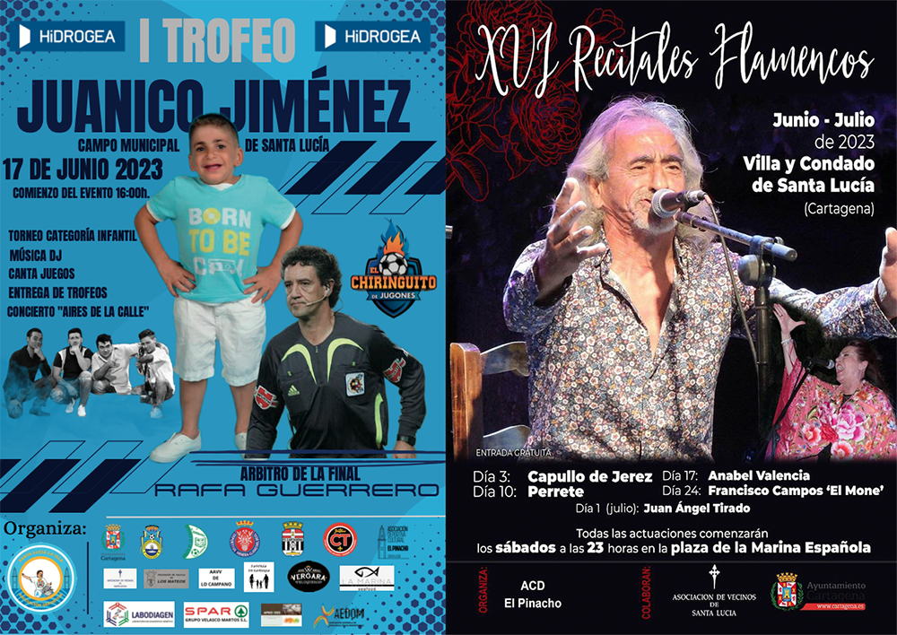 Hoy, en el campo municipal de Santa Lucia, se celebra el 'I Torneo Juanico Jiménez', el niño Cartagenero que falleció en 2014 a causa de una enfermedad rara catalogada como síndrome de Schimke. Habrá distintas actividades, como música cantajuegos, siendo la principal un torneo de categoría infantil de futbol, cuya final arbitrará Rafa Guerrer, exárbitro auxiliar de primera división y actual colaborador del programa 'El Chiringuito'.