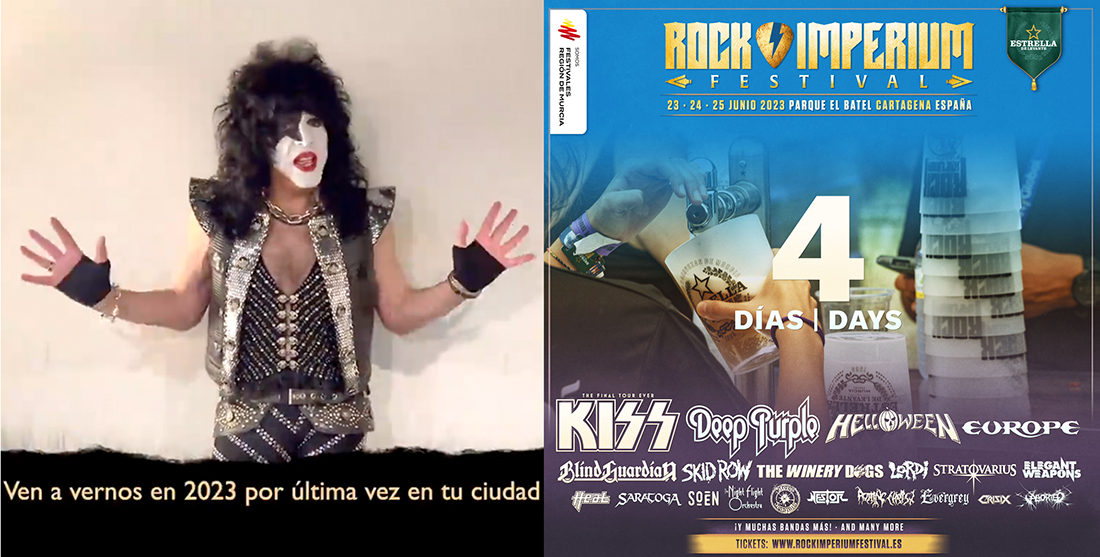 La icónica e influyente formación estadounidense KISS, una de las bandas de rock más grandes de todos los tiempos, ofrecerá su despedida de los escenarios con una fecha única en España y lo hará en Rock Imperium Fest, en Cartagena, el domingo 25 de junio. Un festival donde además estarán Deep Purple, Helloween y Europe, que comenzará este viernes 23 y por el que pasarán 51 bandas, llenándose la ciudad portuaria de rock y heavy metal. Un recinto situado en la Cuesta de El Batel, que en esta segunda edición ha sido ampliado, que ya ha vendido el 90 % de su aforo. Los últimos abonos y entradas se pueden adquirir en rockimperiumfestival.es