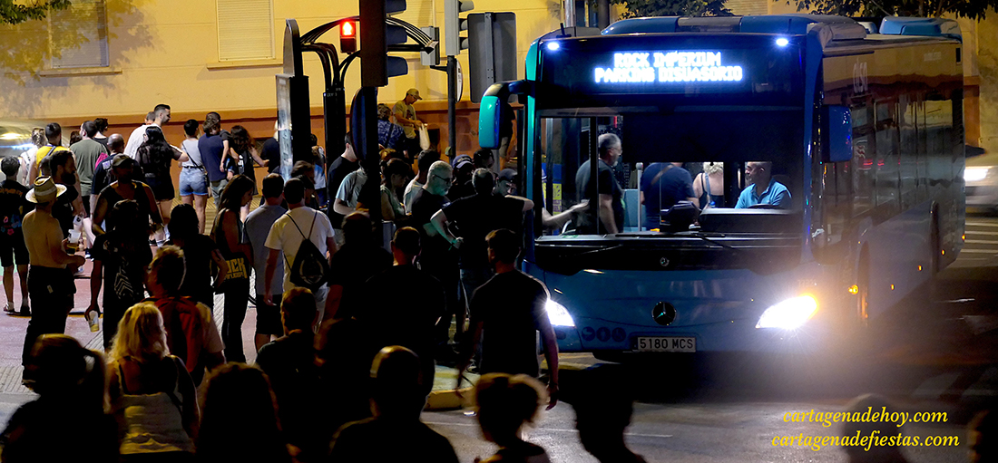 Una medida del Ayuntamiento de Cartagena en el ‘Rock Imperium Fest’ muy elogiada por bastantes asistentes es el autobús que cada veinte minutos efectúa trayectos entre la Cuesta del Batel y la explanada de centro comercial de La Rambla, que se ha habilitado para aparcamiento de turismos.