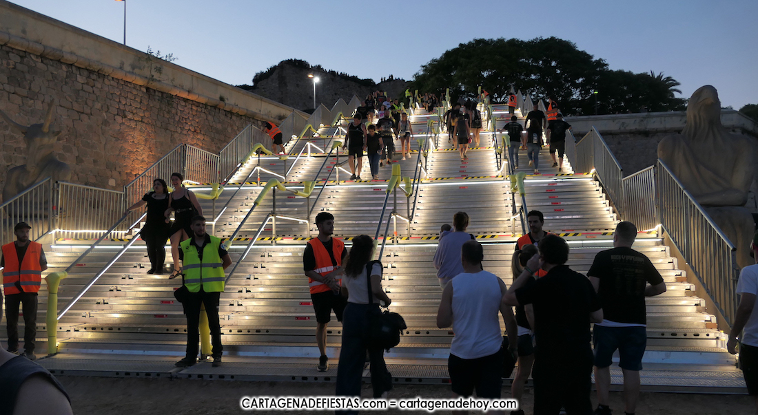 Por cierto, la escalera contaba con personal de la organización en varios puntos para evitar que los que la utilizaban se parasen y surgiesen atascos.