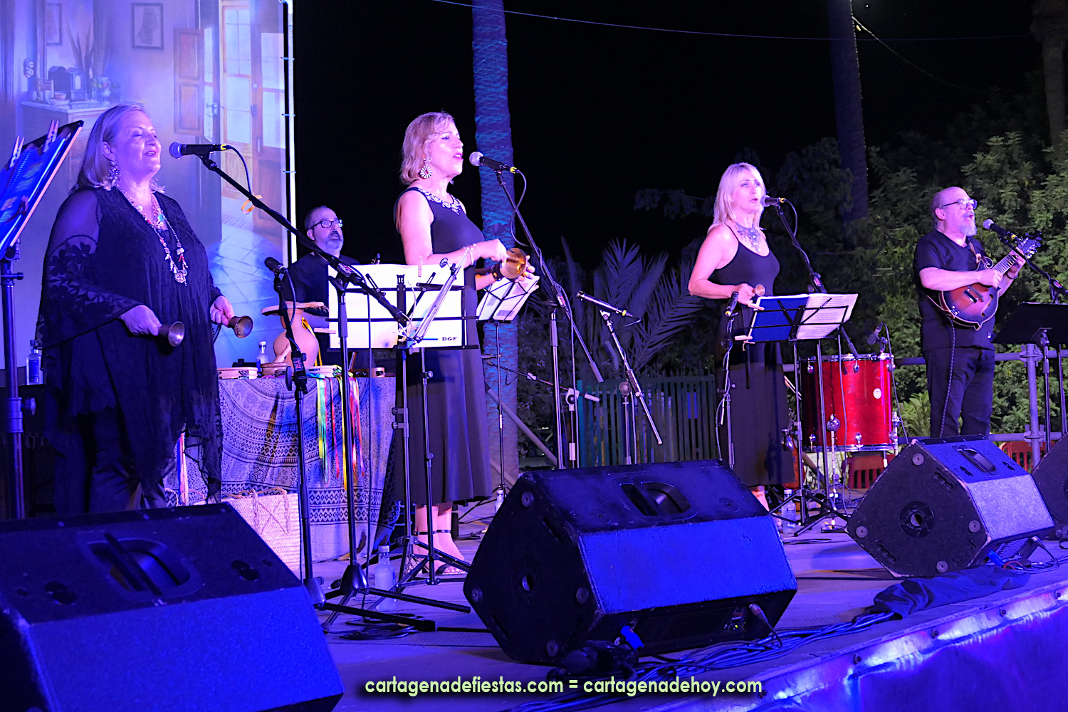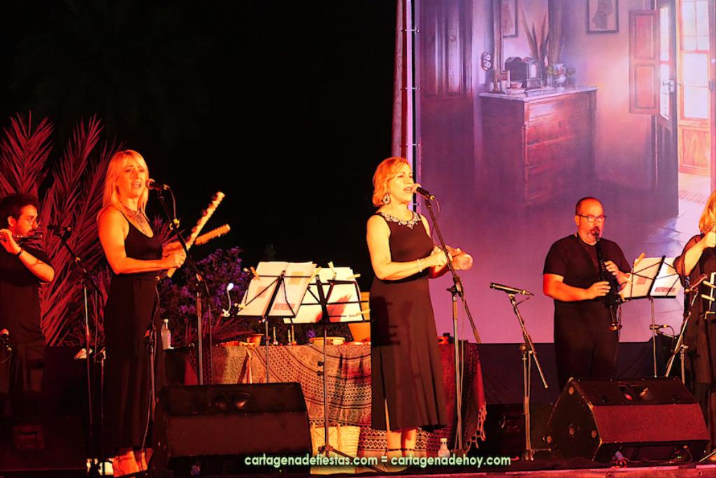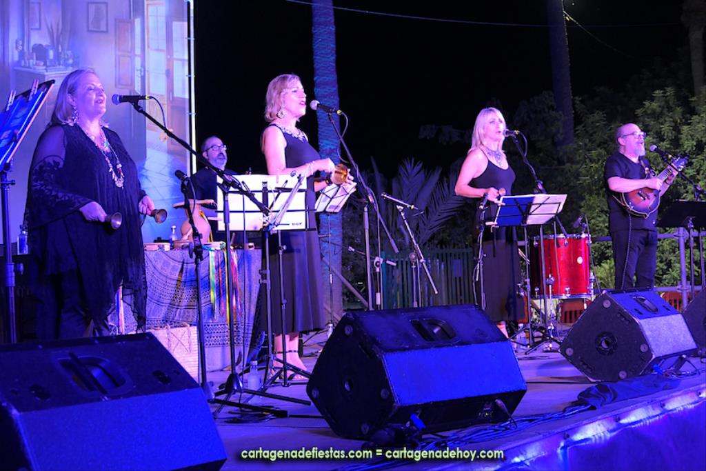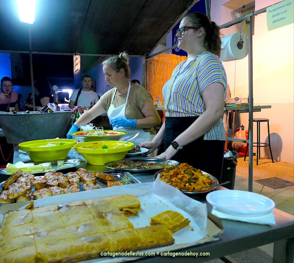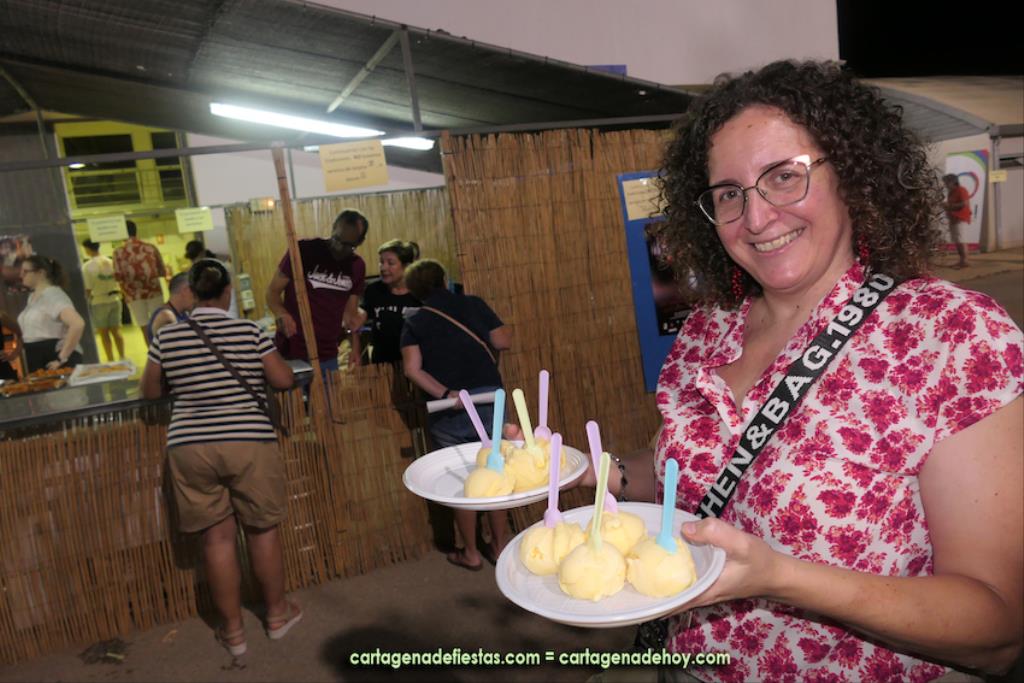 Otro punto de interés fue la exposició de la Asociación fotográfica de Cartagena 'Click' con imágenes del grupo palmesano y de tradiciones artesanales de nuestros campos. Un tercer campo que atrae mucho estas noches está en la gastronomía (aderezada con vino o cerveza, principalmente), en los productos más tradicionales no admiten espacio para la denominada 'cocina de diseño'. Un frito, patatas con ajo, tortilla con cebolla, morcillas, longaniza, ensalada con tomate y boquerones... Todo delicioso y que sirven con diligencia y organización los propios componentes del grupo folclórico. Ah, por supuesto, hay que añadir los postres, donde destacan las flores y el chambi de vainilla con su cucurucho 'de toda la vida'. También descubrimos que algunos mezclan flores y helado. Es que lo que realmente está bueno, incluso, se puede mejorar.