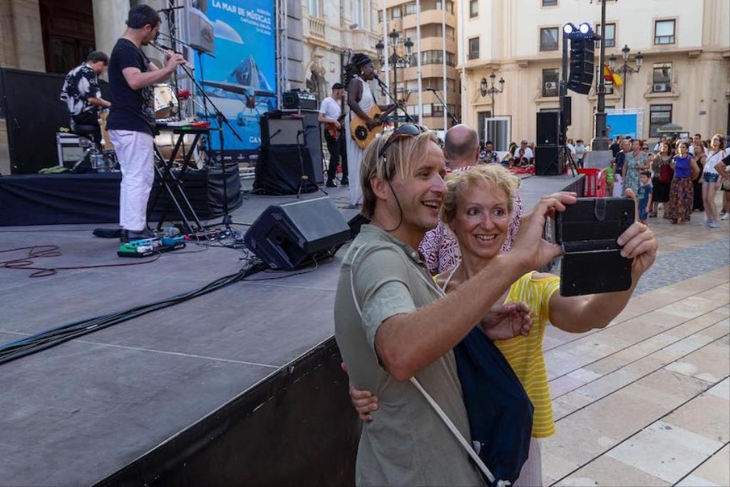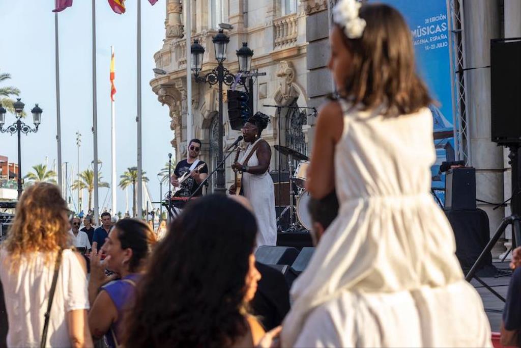 Comenzó Mélissa Laveaux en la plaza del Ayuntamiento. La cantautora y guitarrista canadiense independiente de ascendencia haitiana ofreció una mezcla de raíces, folk y blues utilizando su característico estilo de guitarra de percusión con los dedos y su voz conmovedora. Continuó en el patio de la Facultad de Ciencias de la UPCT el compositor, violinista y vocalista, también canadiense, Owen Pallett, con música pop y clásica.