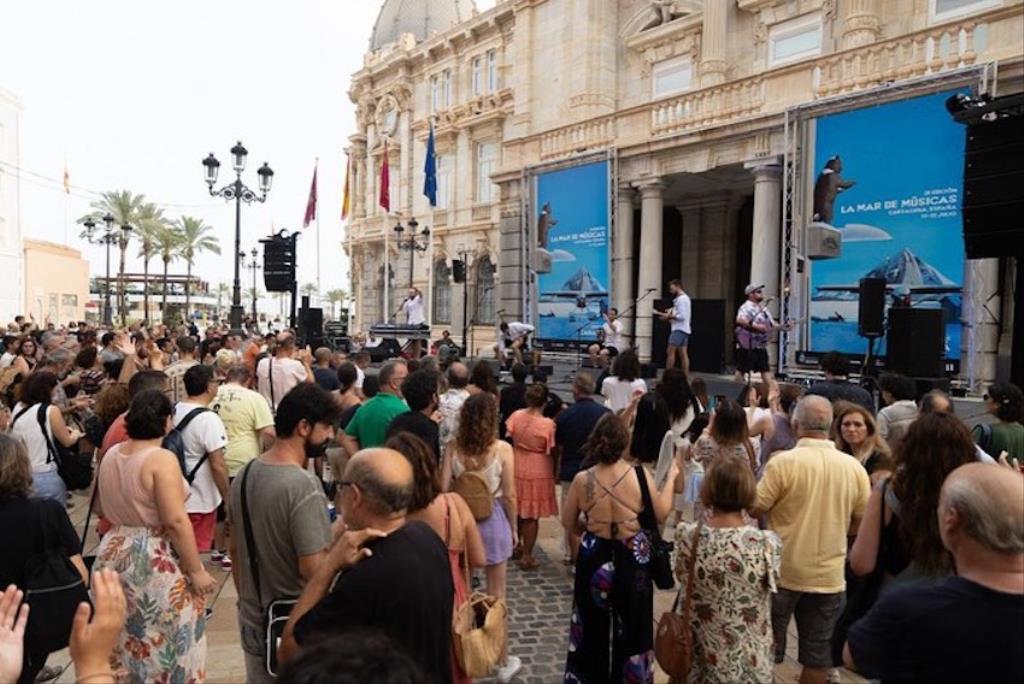 La jornada de cierre del XXVIII festival de 'La mar de músicas' comenzó en la plaza del Ayuntamiento con una fiesta canadiensa montada por 'Le Diablé a Cinq', para después, en el patio de la Facultad de Ciencias de la Empresa de la UPCT coger el protagonismo Jacobo Serra presentando 'Doce', su último trabajo. El auditorio 'Paco Martín' del Parque de Torres fue la tercera escala con 'Califato 3/4' y su homenaje a Lola Flores, que resultó la noche más gamberra de esta edición ante un graderío repleto. Por cierto, la bandera de 'Mar Menor vivo' también la mostró este grupo andaluz, mostrando una vena reivindicativa que también quedó reflejada cuando pidieron que este 23J se vote por la cultura. Fuegos artificiales y epílogo con la verbena montada por Carlangas (Carlos Pereiro) en el escenario del Castillo Árabe. Acaba el festival y ya se piensa en la edición 29, con la fortaleza que tras un ejercicio más exitoso en el que los llenos han sido mayoría.
