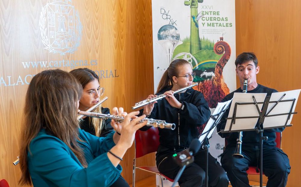Como muestra del potencial de los jóvenes intérpretes, la presentación del concurso ha contado con la actuación de un cuarteto formado por los alumnos del Conservatorio de Cartagena Celia Ibáñez Alcolea (flauta travesera), Antonia del Olmo Sánchez (flauta travesera), Óscar Giménez Romero (clarinete) y la directora del conservatorio María José Castaño (flauta travesera); que han interpretado un extracto de la “Sinfonía del Nuevo Mundo”.