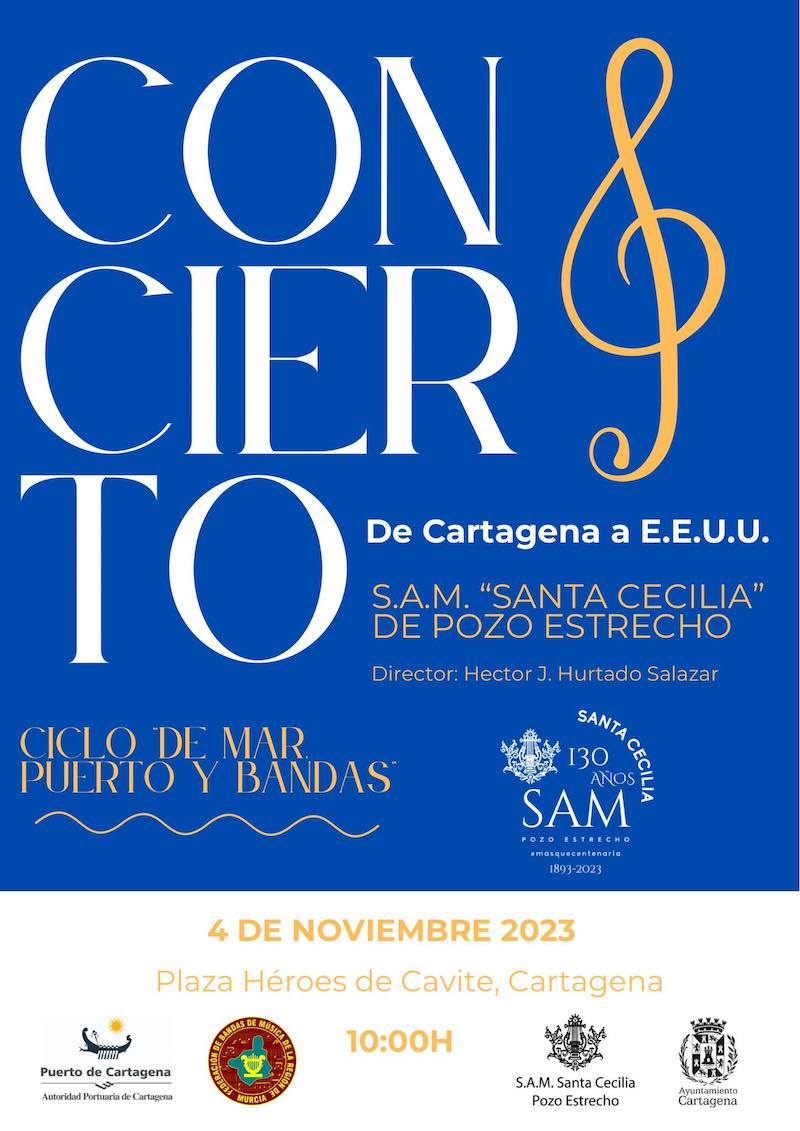 La Sociedad Artístico Musical 'Santa Cecilia' de Pozo Estrecho actúa hoy, a las 10 horas, en la plaza de Héroes de Cavite en la jornada final de la segunda edición del ciclo 'De mar, puerto y bandas' que comenzó en mayo. En la foto, la joven orquesta hace unos días en el festival de bandas de música de Caravaca de la Cruz.