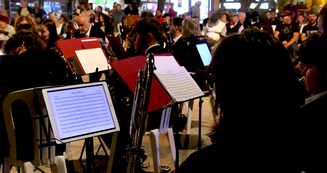 La partitura es el documento que indica la interpretación de una pieza musical. Lo habitual durante varios siglos ha sido verlo en papel, pero ahora está en pleno trasiego hacia la tecnología, como se pudo contemplar en el concierto de la SAM 'Santa Cecilia' de Pozo Estrecho en la 'VIII Muestra modernista', donde las tabletas y dispositivos móviles están abriéndose paso.