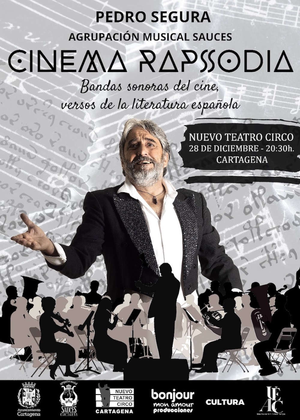 Junto a él una gran orquesta, Agrupación Musical Sauces, interpretando las icónicas bandas sonoras del cine como Memorias de África, Bravehearth, La Misión, Juego de Tronos... Será un diálogo mágico que resonará en el Nuevo Teatro Circo el 28 de Diciembre a las 20:30h