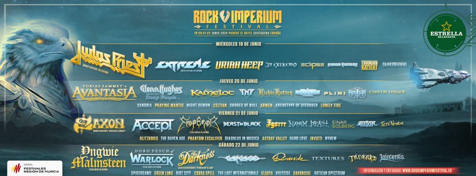 'Judas Priest', 'Avantasia', 'Saxon' y 'Yngwie Malmsteem' saldrán a la escena de la Cuesta del Batel a las diez de la noche de los cuatro días de celebración, respectivamente, miércoles, jueves, viernes y sábado del 19 al 22 de junio próximos, mientras que 'Extreme', 'Glenn Hughes', 'Accept' y 'Warlock' lo harán entre las ocho y nueve en el otro escenario. En total, serán 48 horas de música las que se ofrezcan 59 grupos.