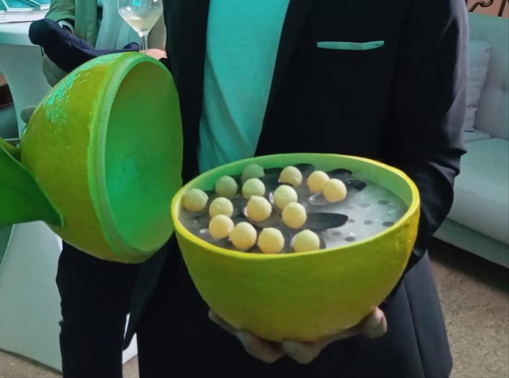 Al terminar, asistentes han degustado un ágape en el que ha servido ensaladilla rusa con crujiente de algas y huevas de trucha, tartar de atún, langostinos tandoori, bombón cítrico, zamburiñas y unas mini hamburguesas, así como una amplia gama de cócteles.