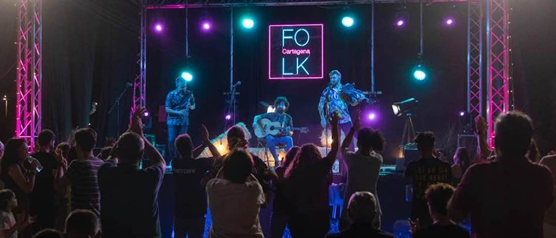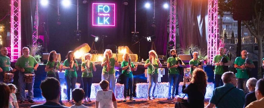 La décimo cuarta edición del festival se puso anoche en marcha con un público entregado en el estupendo marco del arbolado del parque de La Rambla. En la foto, los cartageneros de 'Celticue', que abrieron el programa.