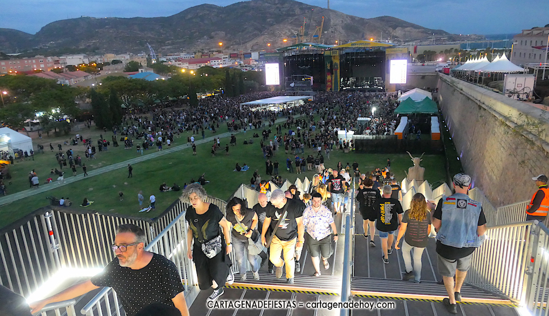 La escalera cuenta con personal de la organización en varios puntos para evitar que los que la utilizaban se parasen y surgiesen atascos, dando indicaciones para que unos carriles sean exclusivamente de subida y otros de bajada.