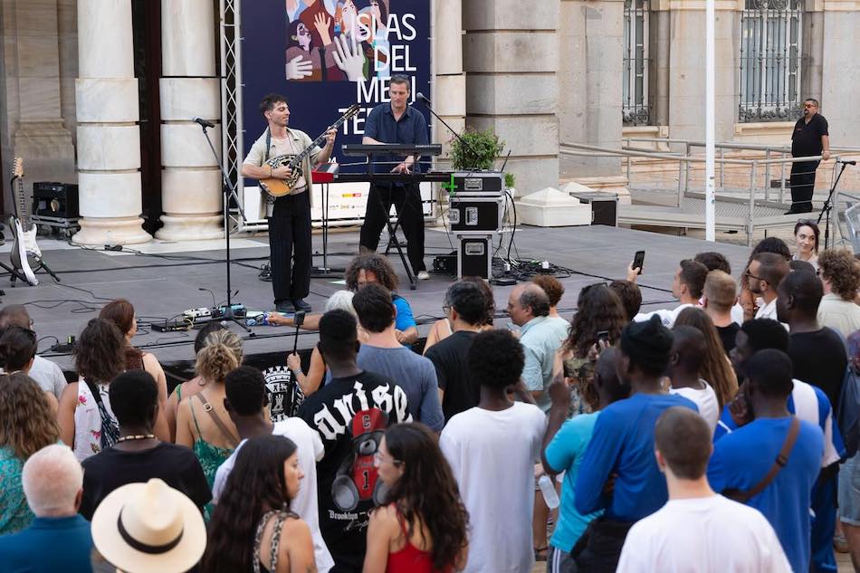 Johan Papaconstantino lució sus raíces griegas y corsas en el escenario de la plaza del Ayuntamiento con una voz envolvente y melodías transportadoras, ofreciendo una experiencia musical única que combina ritmos contagiosos con letras conmovedoras.