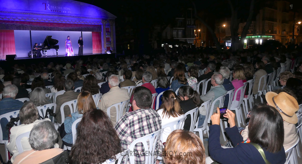 Bastante más de mil personas presenciaron la cautivadora actuación de los cantantes y pianista de la itinerante 'Carroza del Teatro Real', que ofreció temas 14 famosas arias.