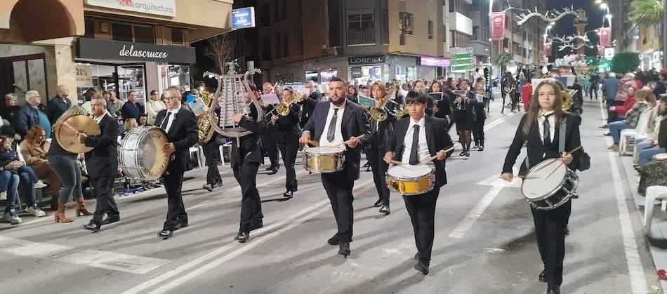 La agrupación musical cartagenera ha partido por partida dofra en el desfile de musulmanes, judíos y cristianos de Lorca, donde han acompañado a la carroza de 'La Menorá' del colectivo judío y a San Clemente, patrón del municipio.