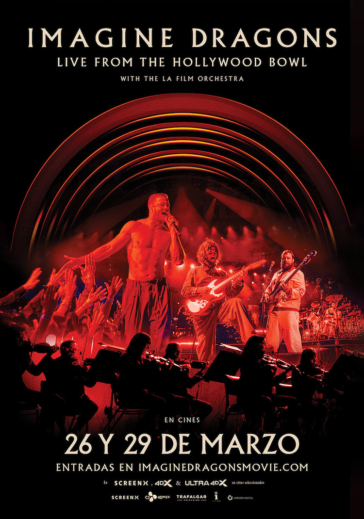 Los fans de Imagine Dragons podrán disfrutar de su concierto en el Hollywood Bowl. La banda de rock estrena Imagine Dragons: Live From The Hollywood Bowl with The LA Film Orchestra en cines. En La Región de Murcia se podrá disfrutar en Murcia (Cinesa Nueva Condomina y Cines Thader) y Cartagena (Cines Mandarache) este miércoles 26. También en algunas salas el sábado 29 de marzo.