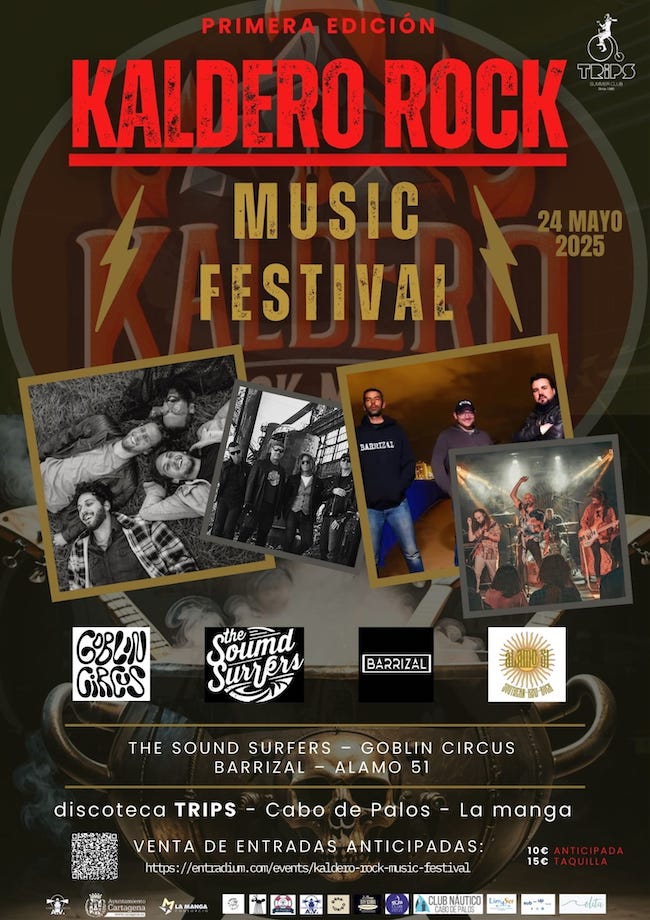 La primera edición del nuevo festival de bandas emergentes se celebrará este próximo 24 de mayo en Trips de Cabo de Palos-La Manga. Participarán 'Goblin circus', 'The Sound Surfers', 'Barrizal' y 'Alamo 51'. Entradas a 15 euros, con precio reducido a 10 si se compra de forma anticipada.