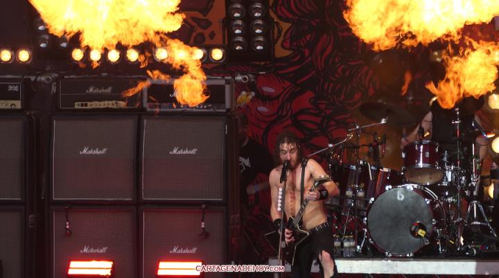 La 'valiente' banda australiana de los hermanos O'Keeffe fue puro espectáculo en 'Rock Imperium Fest' de Cartagena, enriqueciendo sus vibrantes y pegadizos temas (han sido los primeros en llevar a espectadores a crear el ‘mosh pit’) que brotaban de un escenario donde el fuego también estuvo presente con el 'show' de un entregado a tope (y sudoroso) Joel, quien lo mismo cantaba mientras avanzaba entre el público a coscoletas como lo hacía mientras preparaba unos güisquis a sus compañeros de banda o lanzaba (muy bien, por cierto) cervezas al público.