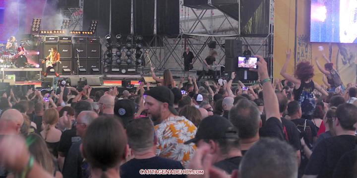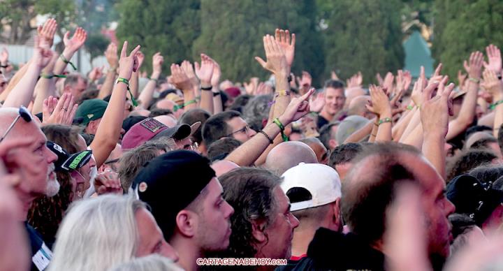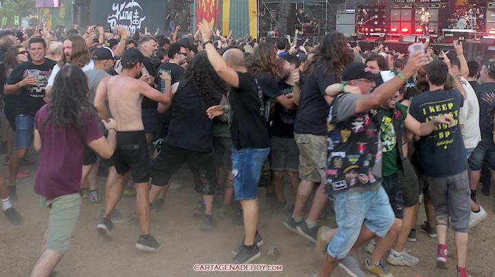 Otro aspecto a destacar que refleja lo entregado del público y su complicidad con los artistas es que se vieron las populares acciones de ‘mosh pit’ y circle pit’. El ‘mosh’ es la ‘olla o pozo’, el hueco o espacio que se genera entre un amplio grupo de asistentes a base de los tradicionales empujones, saltos, patadas o acrobacias (todo de buen rollo), siendo tradicional en los espectadores metaleros y punkis. Por su parte, ‘circle pit’ (pozo circular) es danzar corriendo entre la gente en un círculo al que se van unido los demás. Es vez fue más 'olla' que 'pozo'.