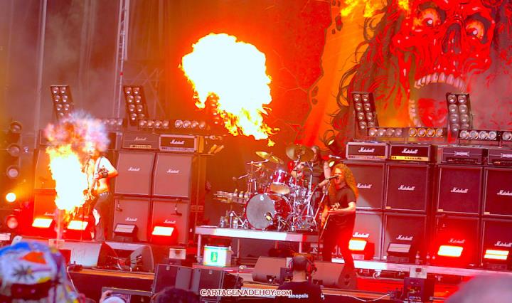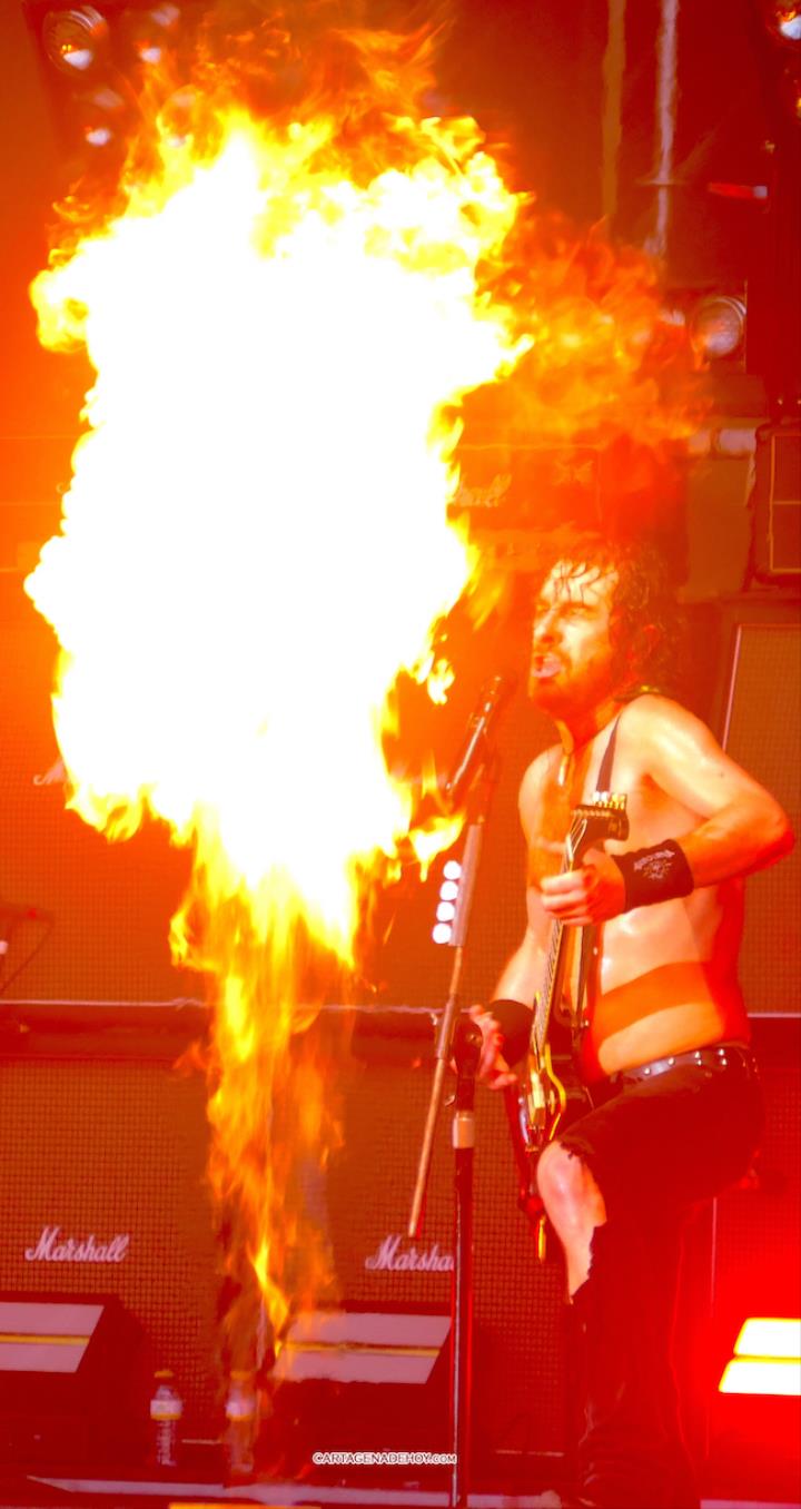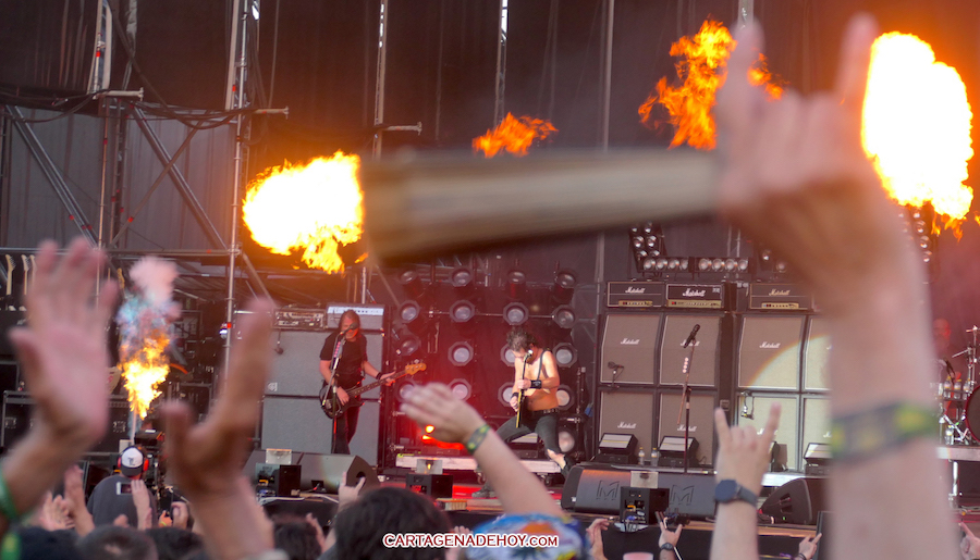 Se les señalan como titanes del 'hard rock' ('roca dura' es su traducción) australiano, pero a un servidor le pareció más eso de la música rocosa con rollo, es decir, 'rock and roll', pues sus canciones te hacía mover el esqueleto con facilidad y hasta tatarearlas enseguida, como es habitual en los estribillos rockandrolleros. Espectacular y muy agradable de principio a fin en la hora y media de concierto desde un escenario con chorros de fuego y constante juego de luces.