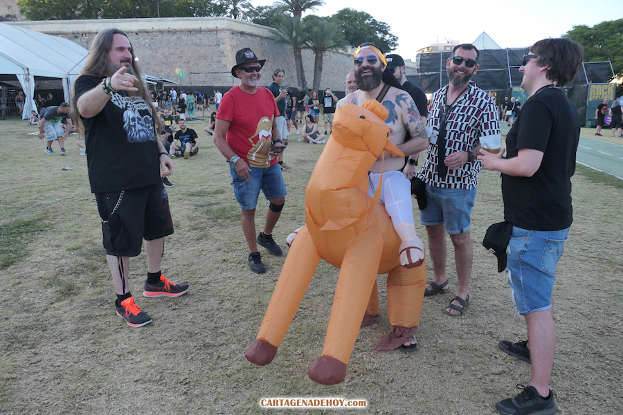 Y sin olvidar a lo que es la gran fiesta del rock, como la que se vivió con la banda estadounidense 'Municipal Waste' que, en su 25 aniversario, actuaba todavía con mucho sol y, por tanto, calor. Fue una juerga musical, tanto por los rociados de líquidos del público, de las 'ollas o plogos' ('most', que no son muy habituales en el festival) y por escenas como ver a uno de los integrantes del grupo avanzar sobre las cabezas del público sobre una balsa hinchable.