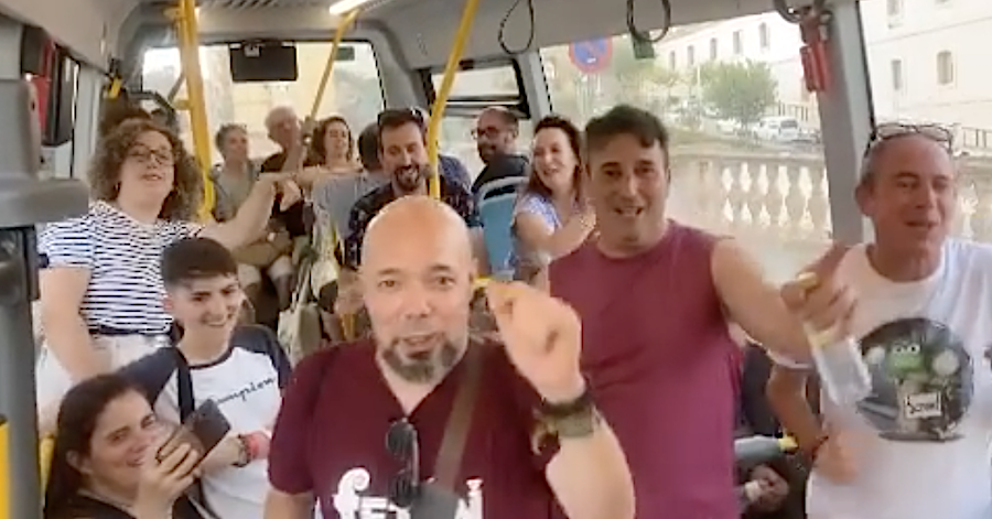 El microbús que se hizo famoso por transportar a los integrantes de 'Kiss' en el 'Rock Imperium Festival' llevó ayer a artistas de 'La mar de música', como Rodrigo Cuevas y 'La Ronda de Motilleja', quienes cantan la versión cartagenerizada de la 'Macarena' que ofreció el extravagante Gene Simmons (Kiss): "¡Dale a tu cuerpo alegría Cartagena, hey Cartagena, ay!".
