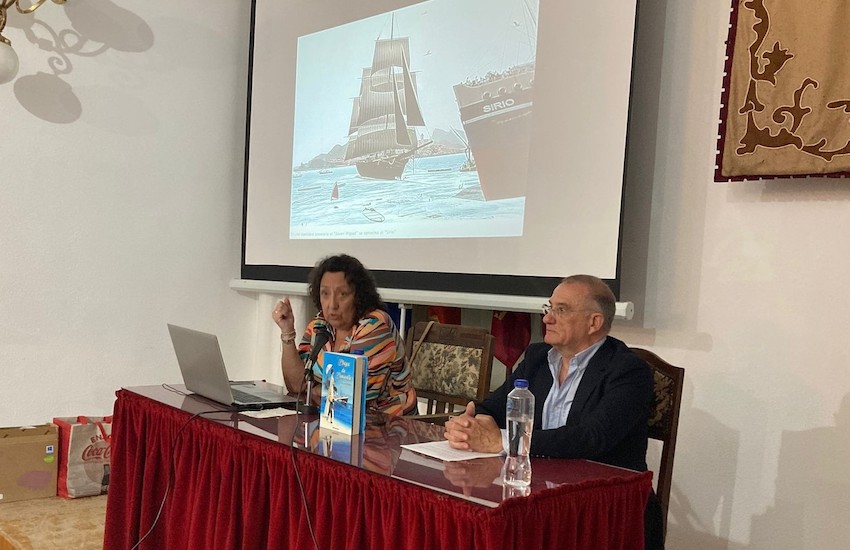 La asociación 'Cartagena siempre' celebró la conferencia ‘Playa de poniente, el hundimiento del Sirio’, con la finalidad de analizar el trágico naufragio que marcó la historia de la navegación civil española y en la que el capitán del barco 'Joven Miguel' salvó a más de cuatrocientas personas en una memorable actuación junto a los pescadores de Cabo de Palos. La conferencia fue impartida por la escritora Lola Gutiérrez, autora del libro ‘Playa de Poniente’, a quien se observa junto a Gonzalo Abad, vicepresidente del colectivo organizador.