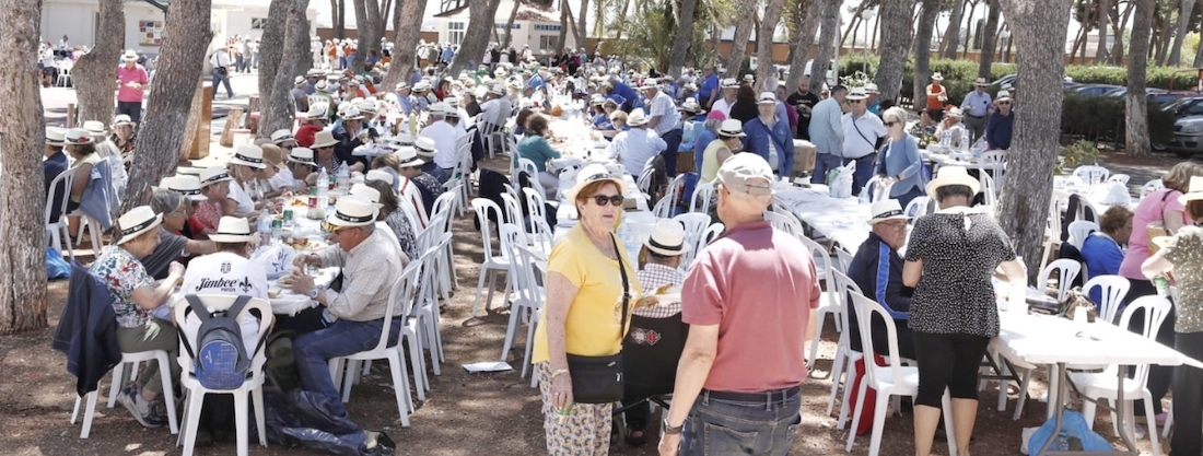 Unas ochocientas personas de los clubes de la tercera edad de Cartagena celebraron su tradicional encuentro anual en Los Urrutias, que llevaba, debido a la pandemia, tres años sin tener lugar.