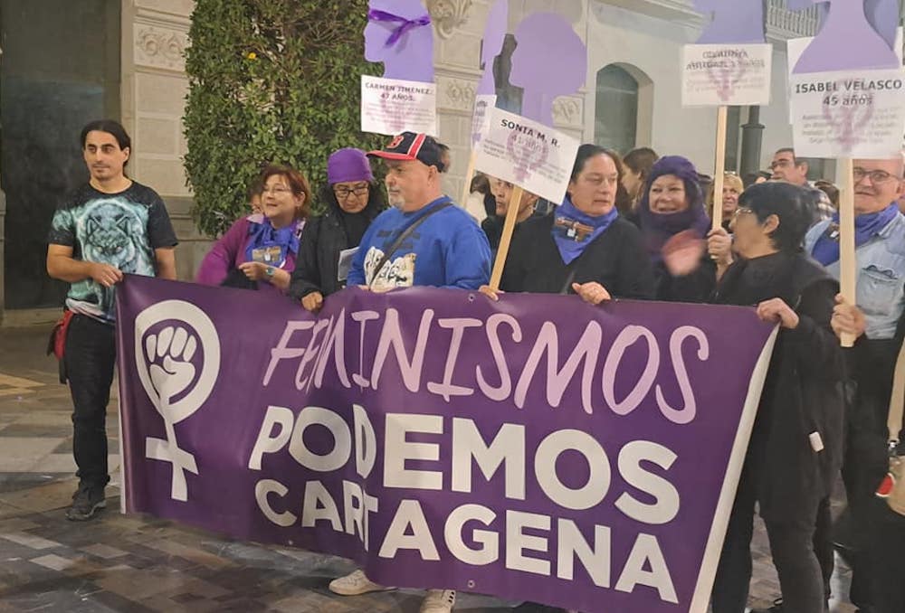 Colectivos, políticos (entre los que estaban Ana Belén Castejón, David Martínez, Leli García y Manuel Torres, que figuran en las fotos de este artículo) y vecinos participaron en la manifestación que anoche se celebró entre las plazas de España y del Ayuntamiento con motivo del ‘Día internacional para la eliminación de la violencia hacia las mujeres’. El acto incluyó la lectura del manifiesto y la proyección de ’25N’ en la fachada del Palacio Consistorial.
