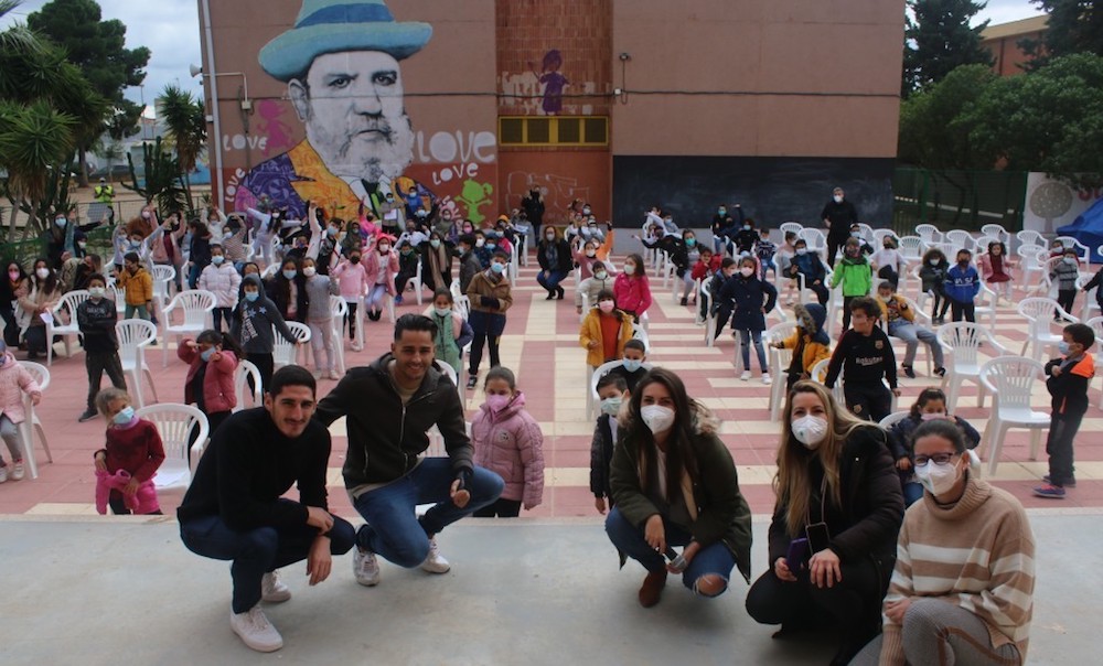 Con los alumnos distribuidos de forma conveniente ante el escenario exterior de la instalación para cumplir con las medidas de seguridad sociosanitaria, ambos futbolistas han respodido a las preguntas de los escolares, en un acto que ha dirigido la directora del centor, María Jesús Martín-Poveda Martínez. Entre las preguntas figuraban desde si les gustaba estudiar hasta la temporada del equipo blanquinegro del fútbol profesional, indicando ambos que siempre piensan en ganar todos los partidos. La jornada ha finalizado con la actuación del resto de los alumnos recitando un poema deportivo que han preparado junto con el profesor de educación física.