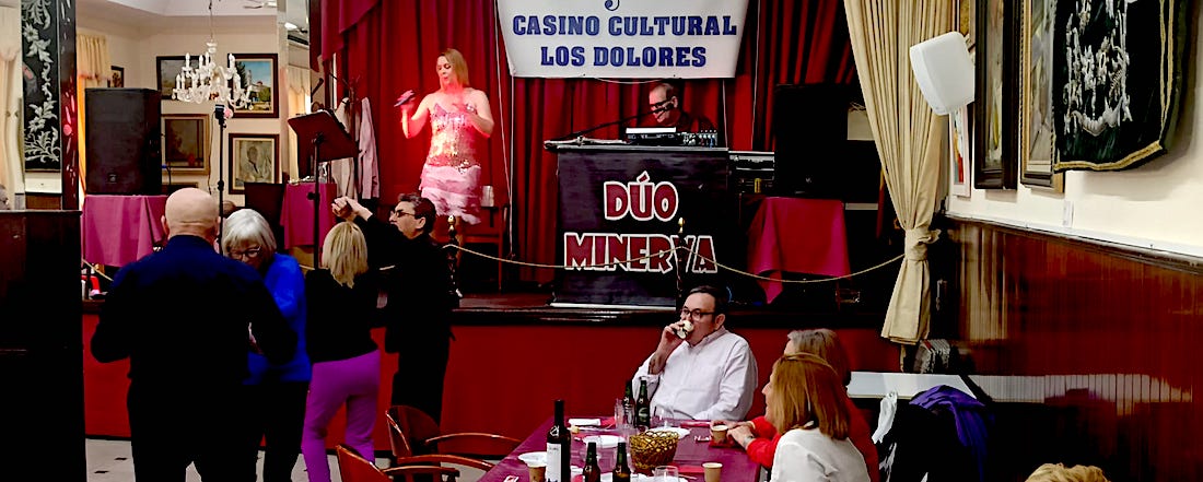 La junta directiva ha organizado para la tarde del sábado una velada para bailar con la música del dúon 'D'Kasualidad', aderezada por la rifa familiar. En la foto, escena del 'Baile del vermú' que se ha celebrado este mes.