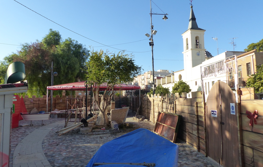 Los arduos trabajos de montaje del vallado exterior, en forma de muros de castillo, comenzaron hace unas fechas y ahora se está en la fase de instalar las casas de Papá Noel y otros personajes navideños, además del gran árbol, los renos y, entre otros, la base sobre la que irá el popular belén, que este año también tendrá nuevas figuras contratadas a Belenes Murcia para reemplazar las que han sufrido desperfectos con el paso de los años.