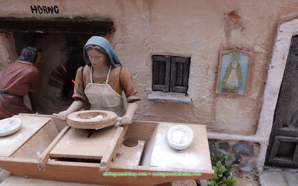 El Belén del Ayuntamiento de Cartagena de la plaza de San Francisco es montado con figuras de grandes imagineros de este gremio por un equipo integrado por dos asociaciones belenistas, que también han llevado a cabo la restauración de las piezas que han sufrido daños.