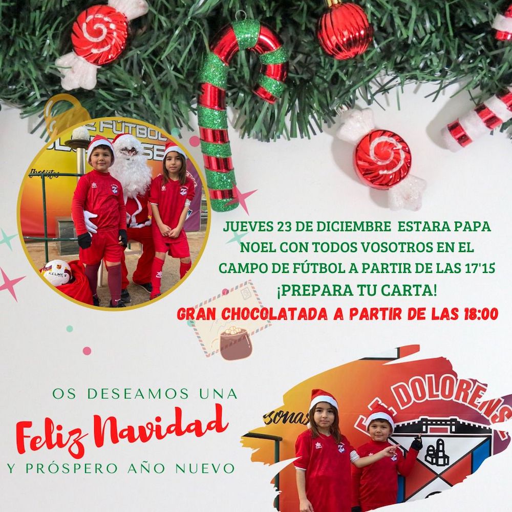 El club de fútbol de Los Dolores y Barriada de Hispanoamérica organiza esta tarde en el campo San Juan Bosco una merienda con chocolate para obsequiar a los chavales que entreguen sus cartas al popular personaje navideño.