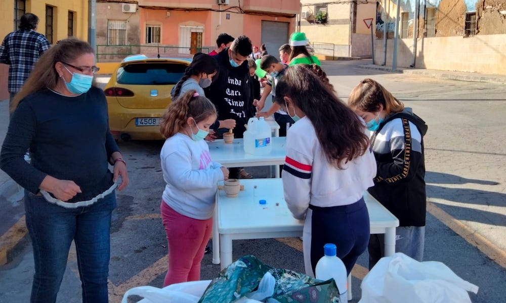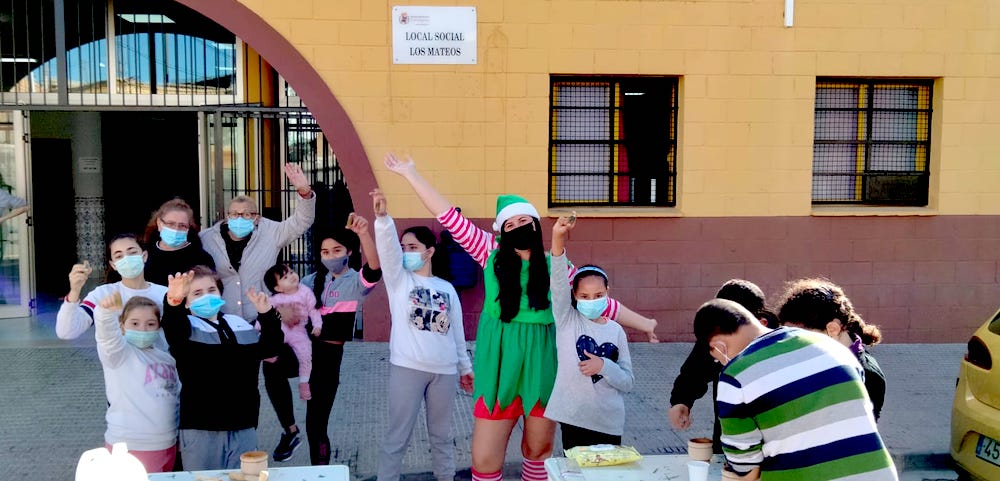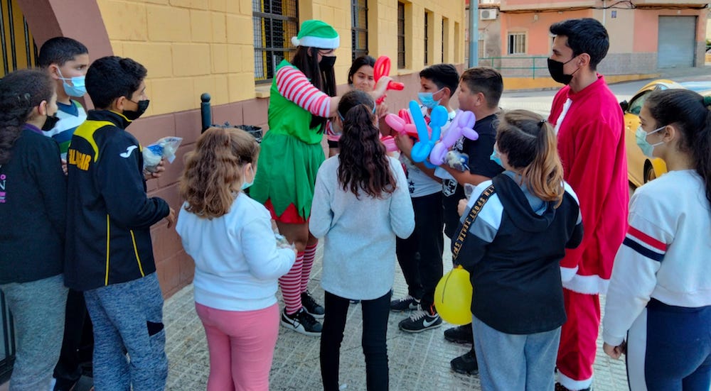 Los chavales de la barriada ha ofrecido una muy respuesta con su asistencia y participación al cuentacuentos 'El increíble viaje de El Principito' en el interior del local social, cumpliendo todas las normas de seguridad sanitaria frente a la pandemia, y a una jornada de talleres navideños en el exterior del inmueble.