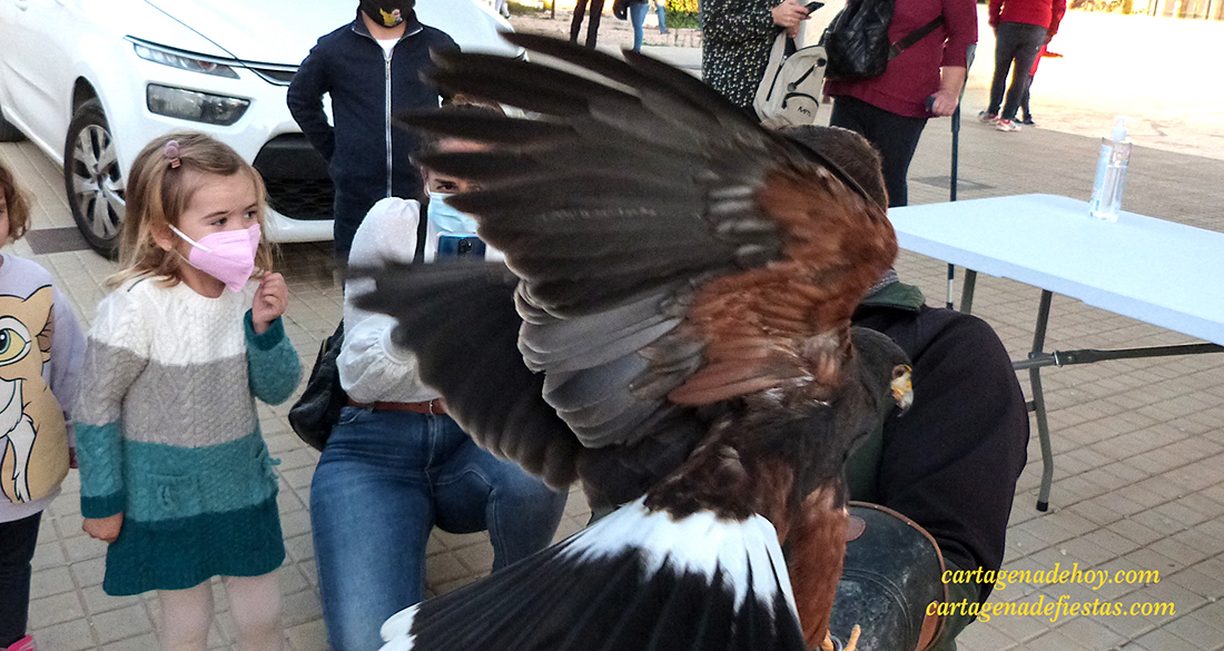 El presidente de la asociación vecinal, Pedro Luis Ros, informó a los asistentes al cuentacuentos que entre los asistentes se sortearía un roscón de reyes donado por un comercio de esta barriada de Cartagena Norte. Las aves rapaces fueron llevadas por Falconry Services, cuyo personal permitió a los asistentes contemplarlas cerca, e incluso tenerlas, pero con plena seguridad.