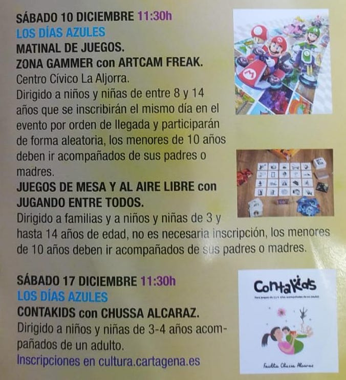 La siguientes actividades, centradas principalmente en niños y adolescentes, tendrán lugar los días 10 y 17 de diciembre.