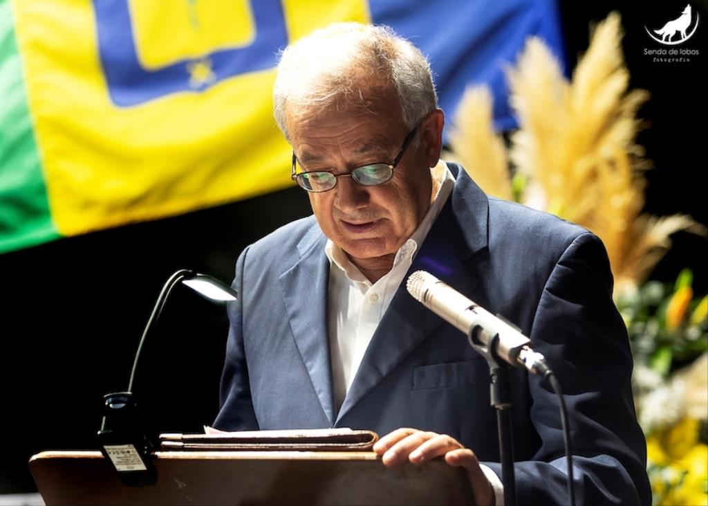 Pero, sobre todo, el mantenedor hizo hincapié en el lema de los Juegos Florales: Patria, Fe y Amor. «Estos deben de ser nuestros pilares fundamentales pues, de esta manera, se construye España, se fomenta la unidad, la convivencia y el desarrollo y, así, se hace camino a nivel de sociedad. Debemos sentirnos orgullosos de formar parte de ella, de su pueblo, su territorio, su herencia histórica y cultural, su gastronomía, su gente diversa y su proyecto común. Aquí en La Palma, también se ha hecho camino después de 50 años de Juegos Florales y de 500 años de la existencia del pueblo». Al concluir su intervención, Pagán fue obsequiado con una placa en la que se le nombró Socio de Honor del Centro Cultural y Deportivo, y firmó en el Libro de Oro de los Juegos Florales.